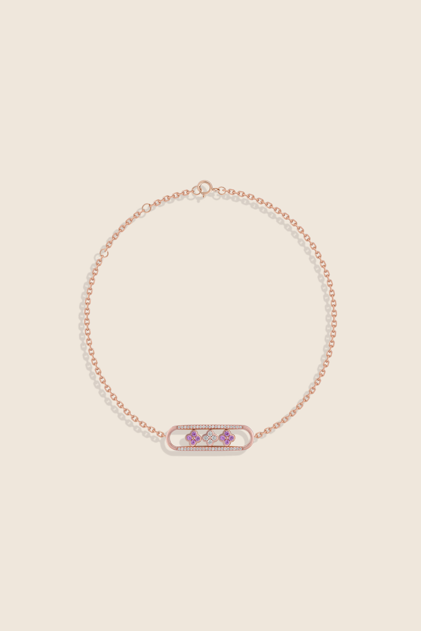 Rose gold, sparkling with diamonds, holds blossoms of amethyst and light an ode to the floral motifs of Islamic design, where color and grace unite