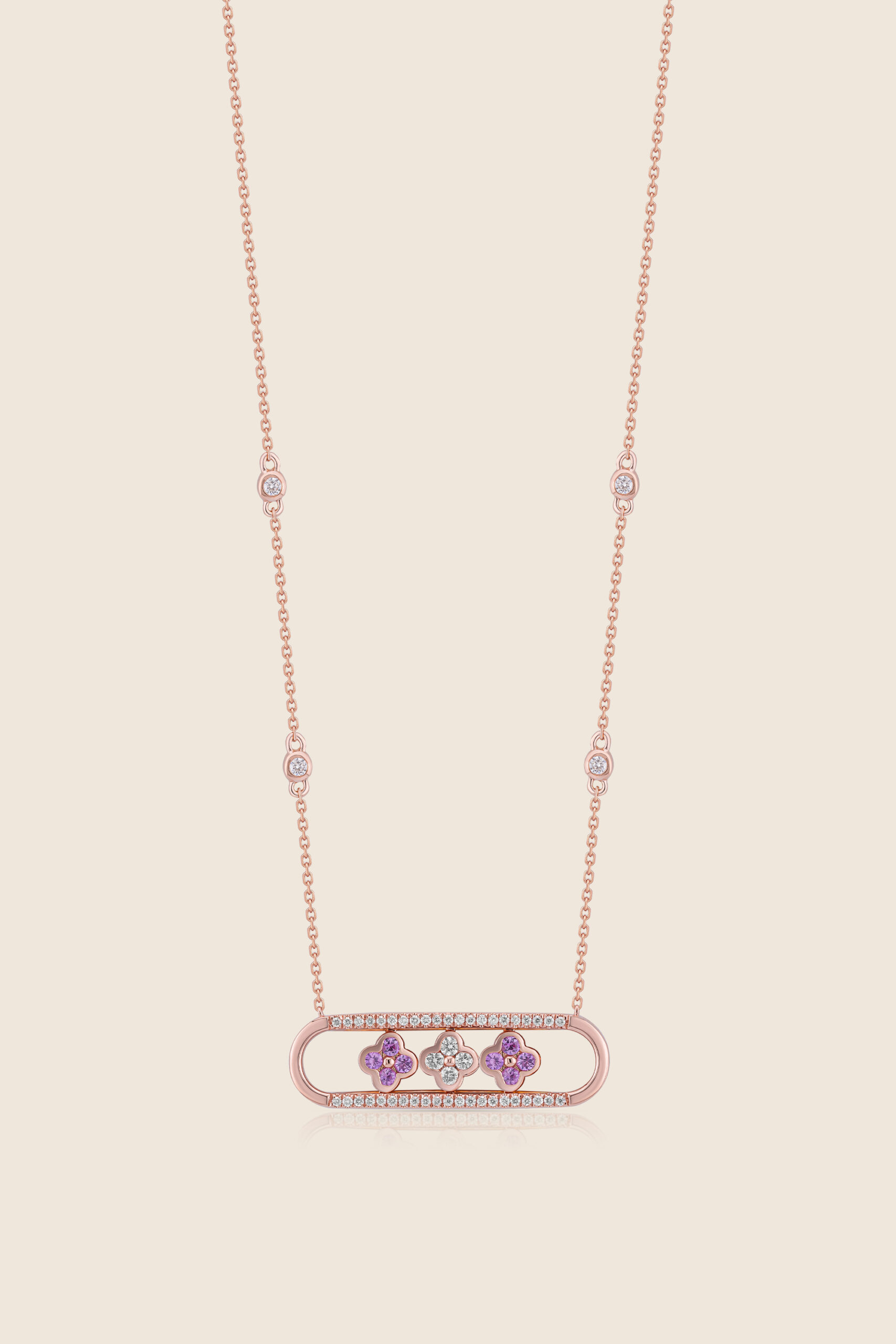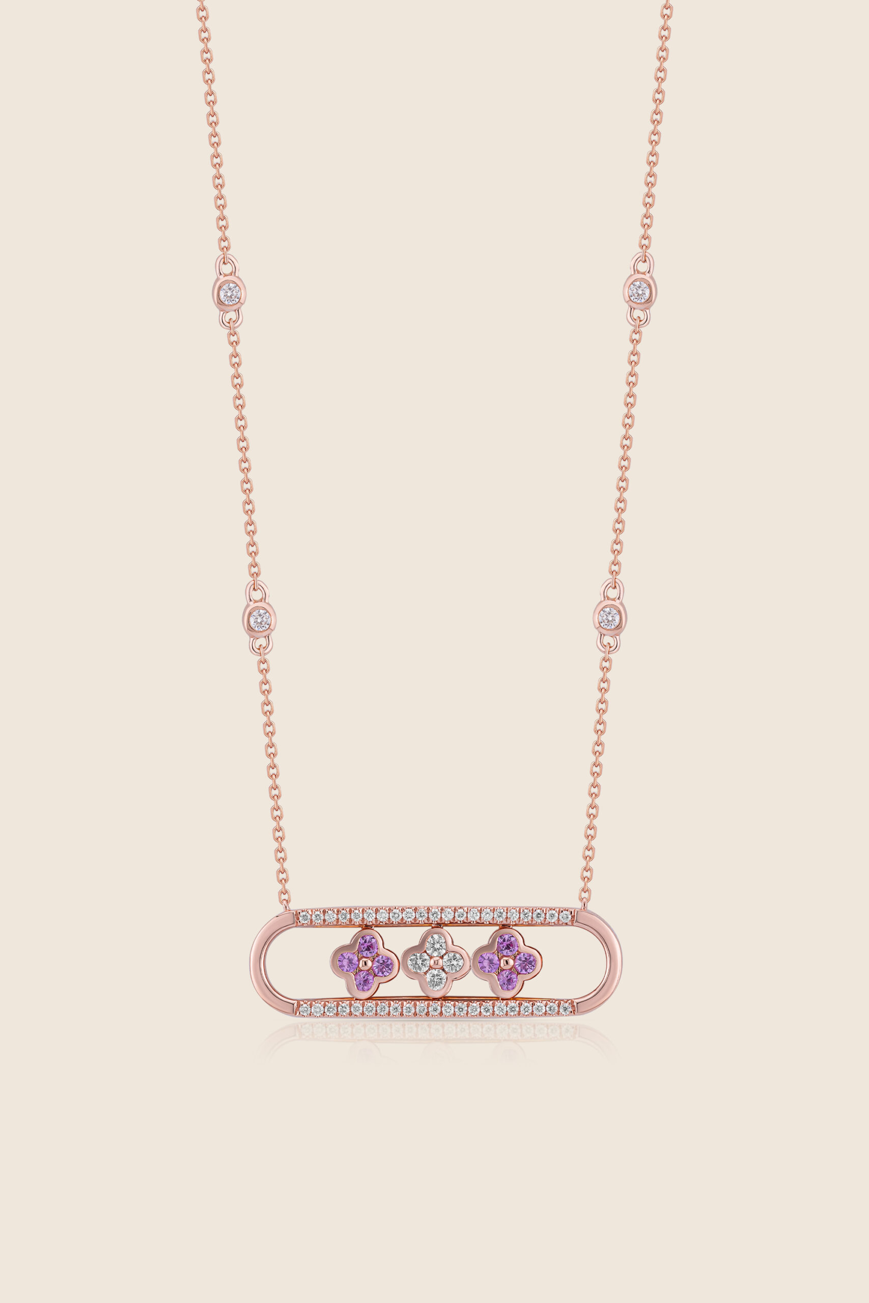 Rose gold, sparkling with diamonds, holds blossoms of amethyst and light an ode to the floral motifs of Islamic design, where color and grace unite