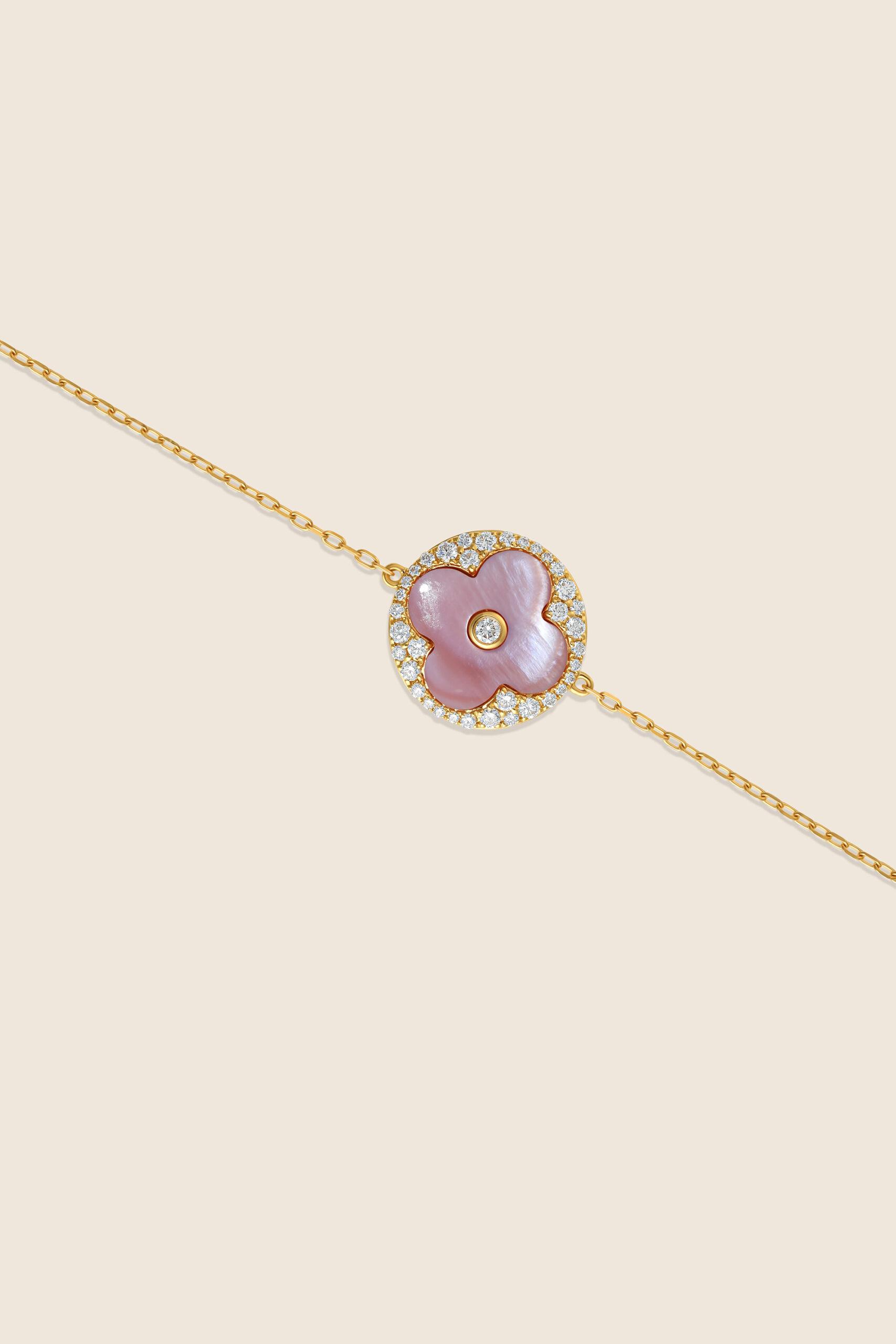Amara yellow gold diamond bracelet with pink MOP