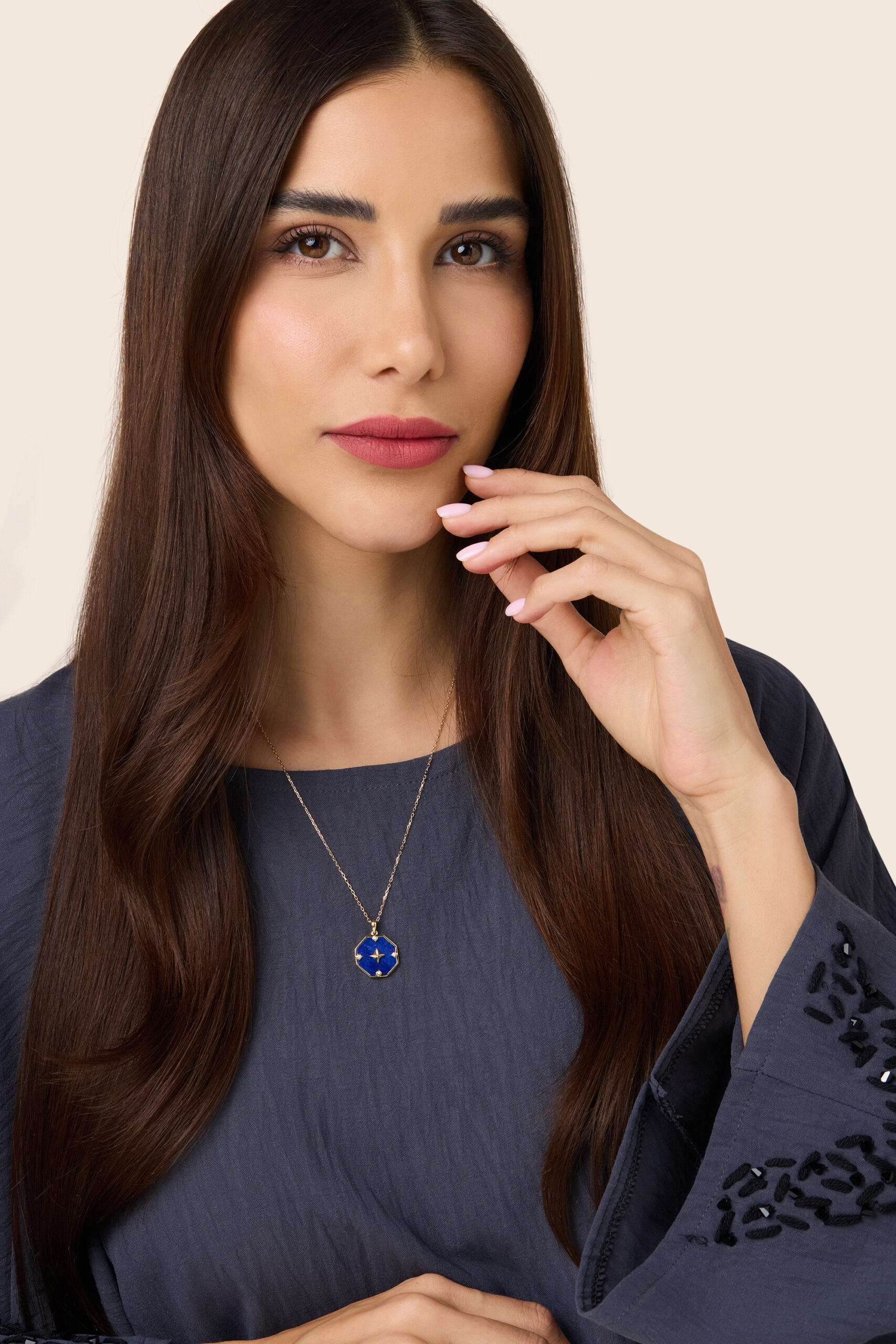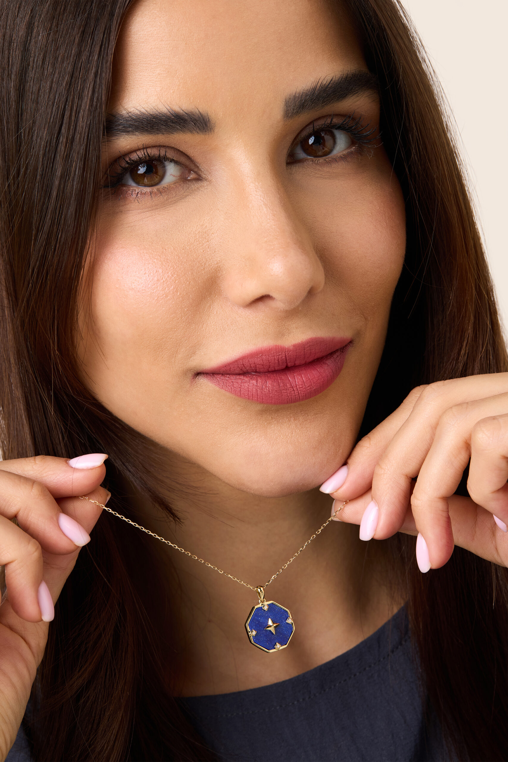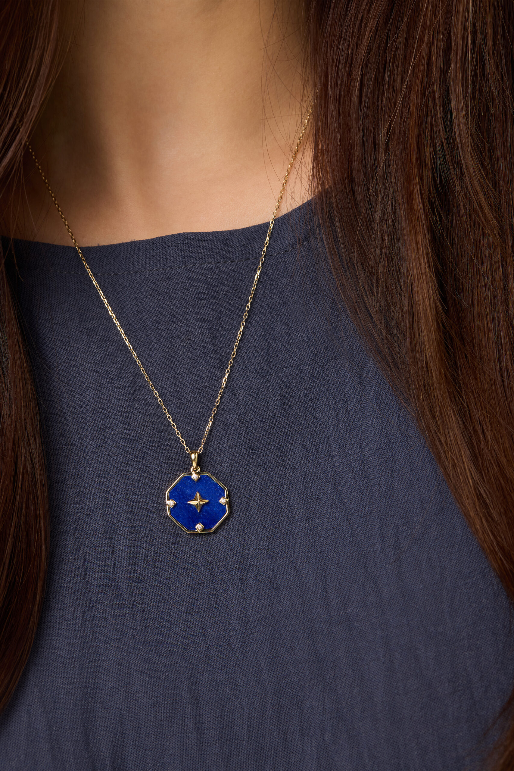 Amara yellow gold diamond octagon pendant with lapis lazuli