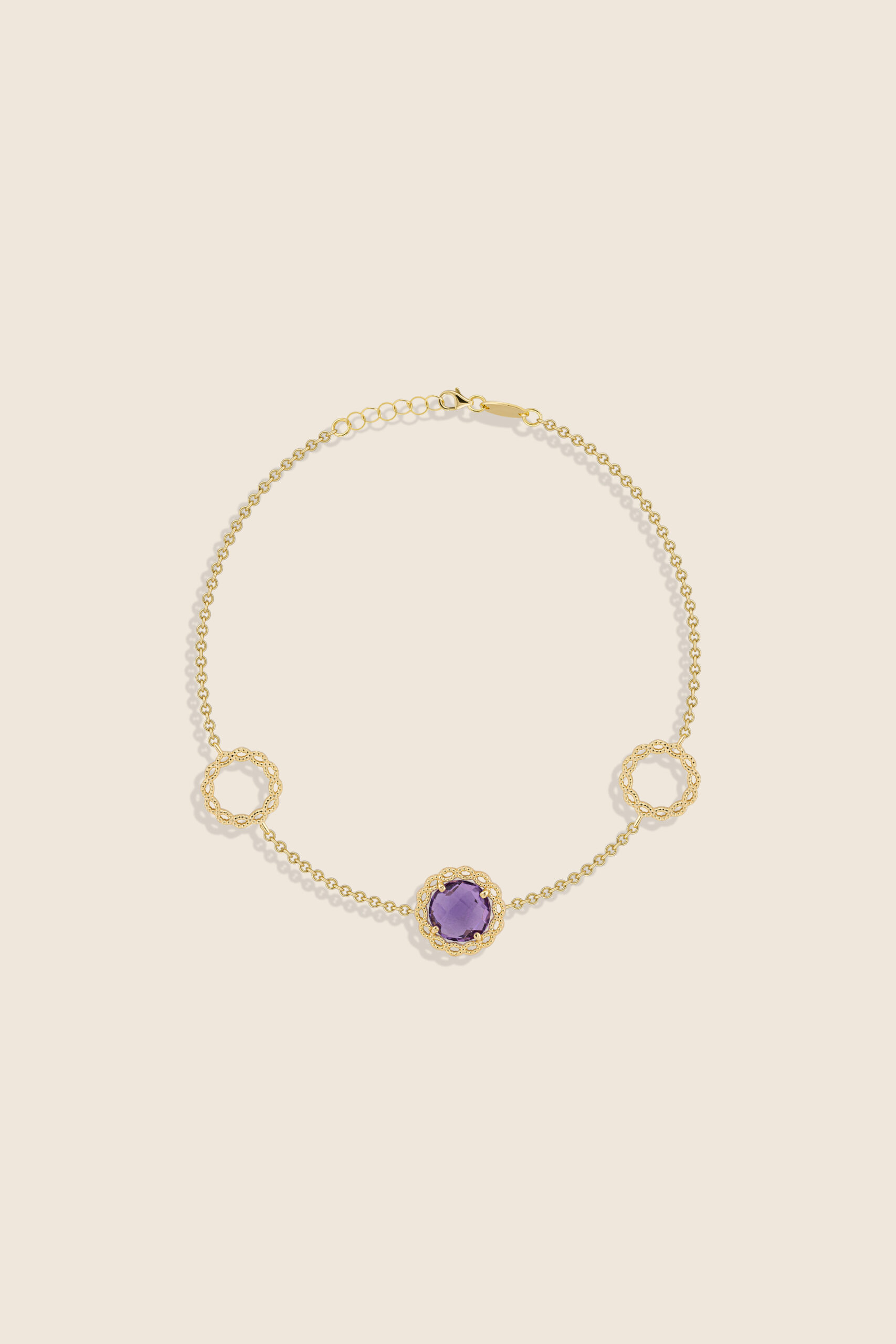 Framed by a golden halo, radiant amethyst and polished gold are accented with delicate detail, capturing elegance, harmony, and individuality?? luminous spirit