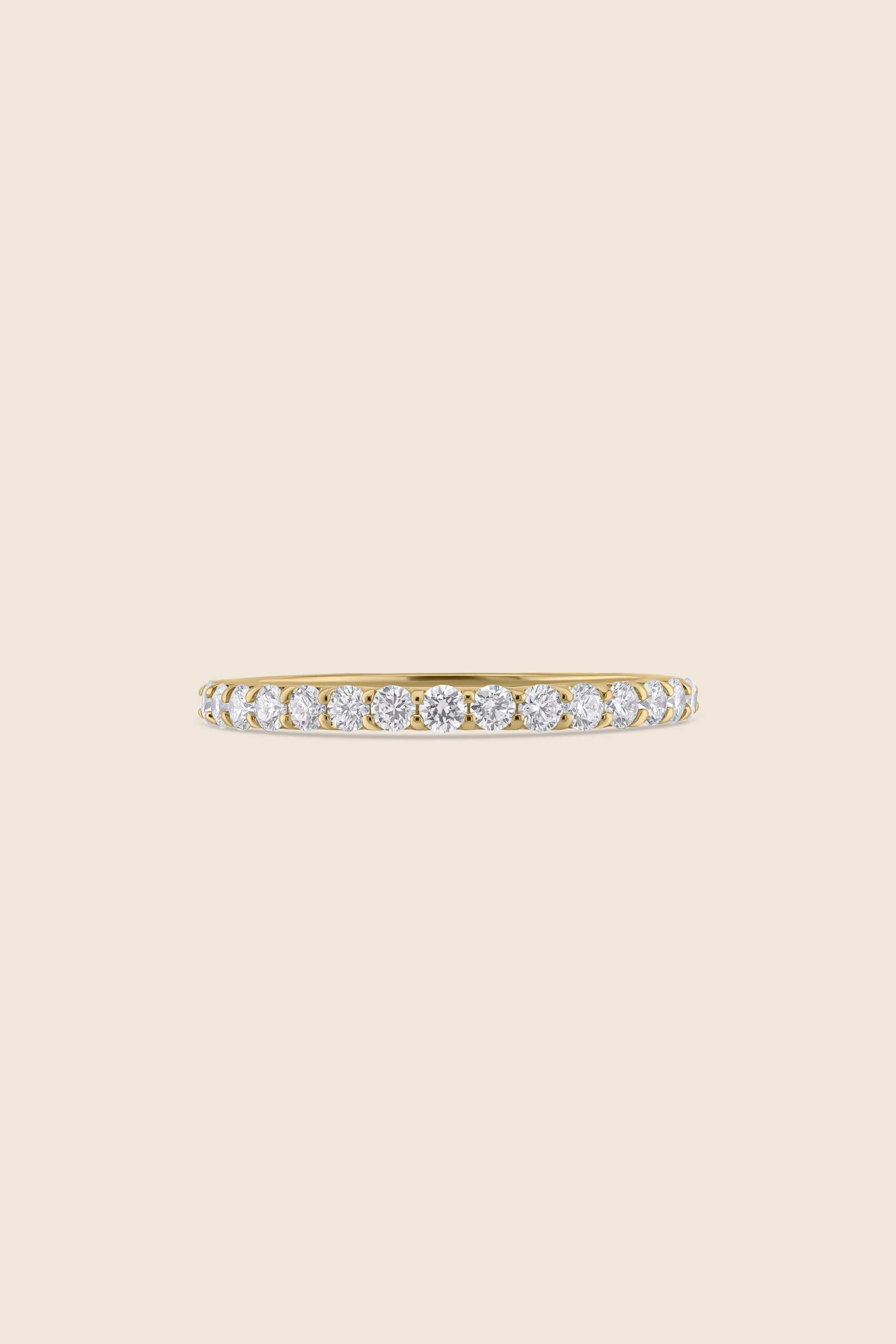 Yellow gold band set with diamonds in four prong basketclassic radiance redefined in pure sophistication.