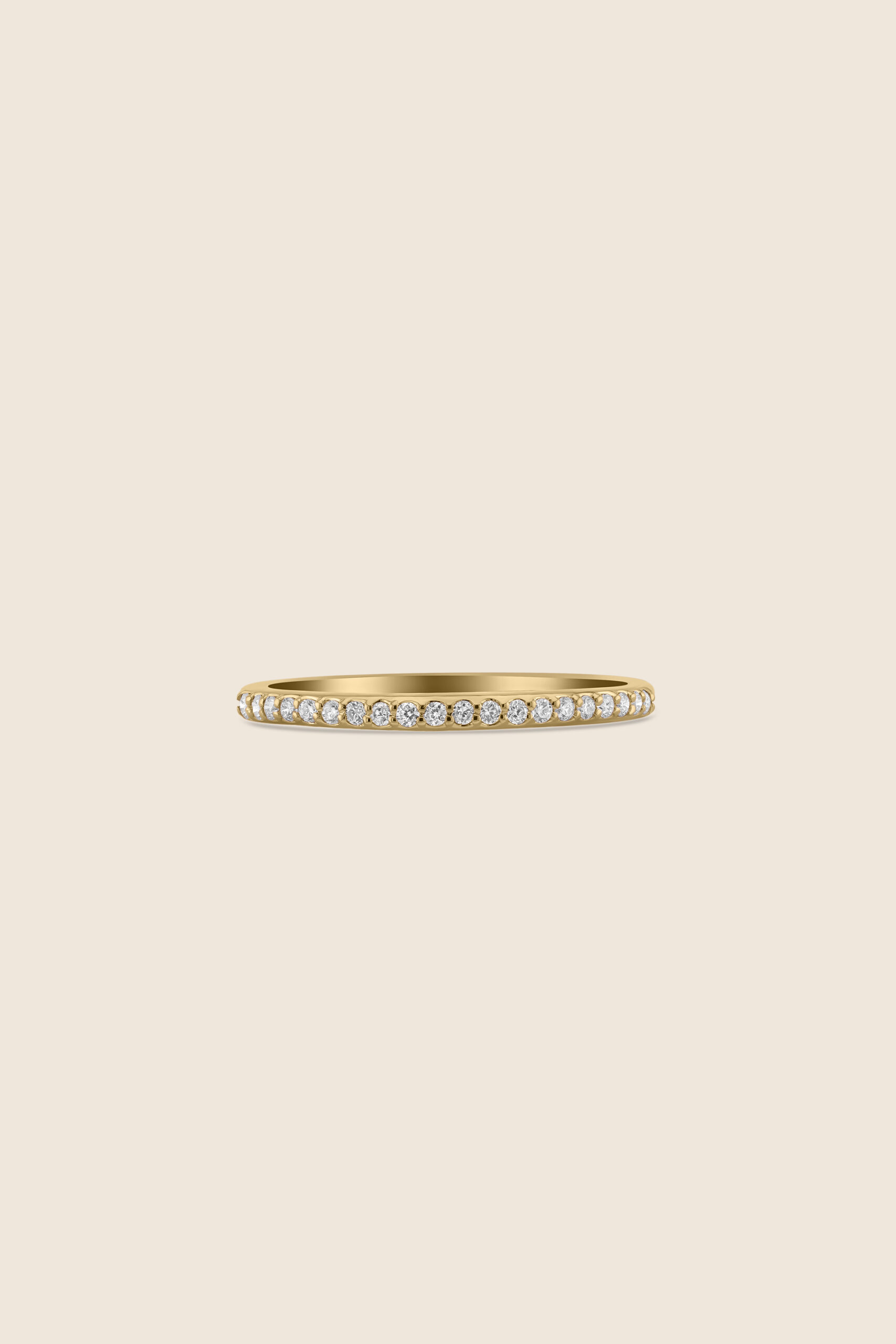 Yellow gold band set with diamonds in four prong basketclassic radiance redefined in pure sophistication.