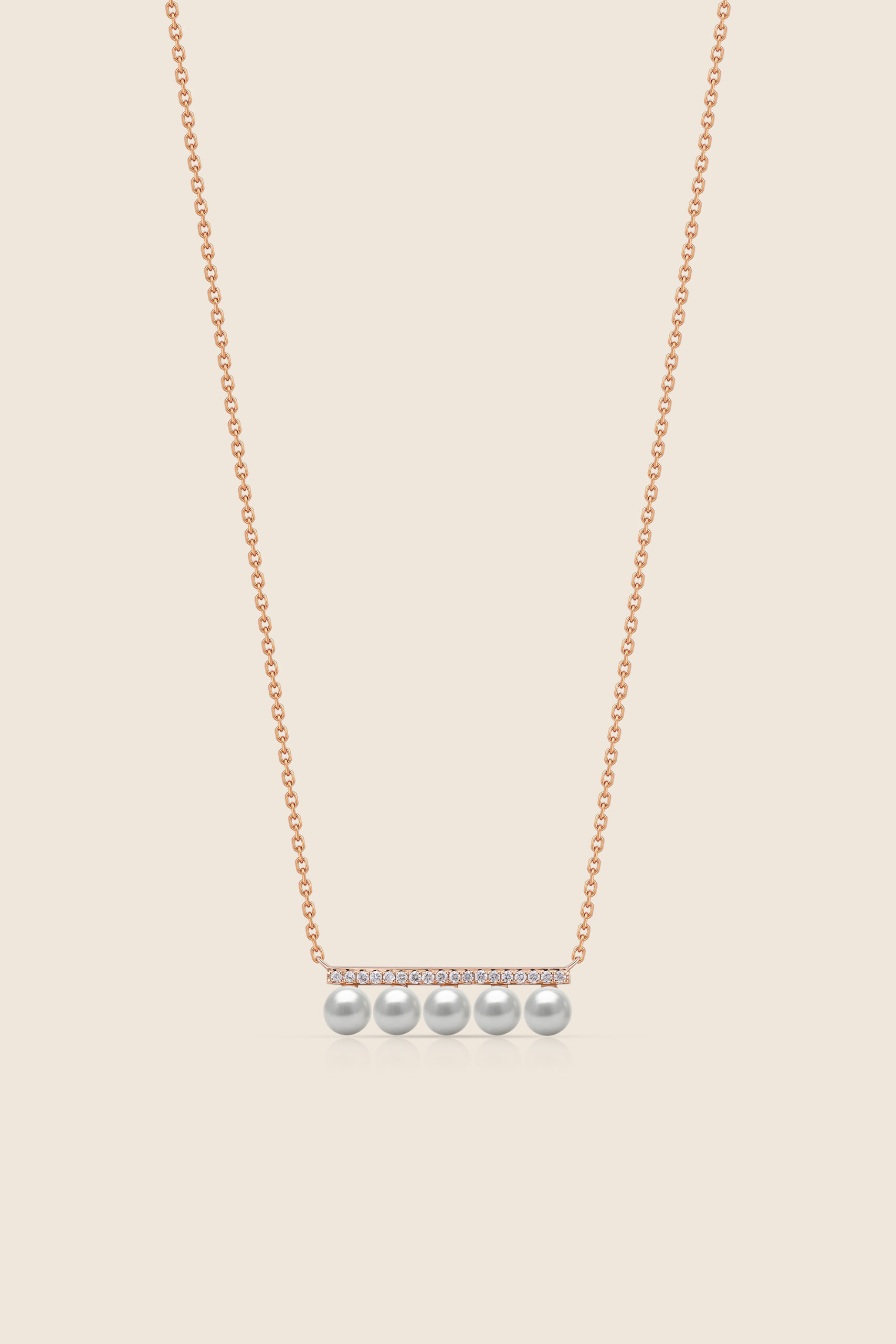 lavita rose gold diamond bar pendant with 5 dangling pearls