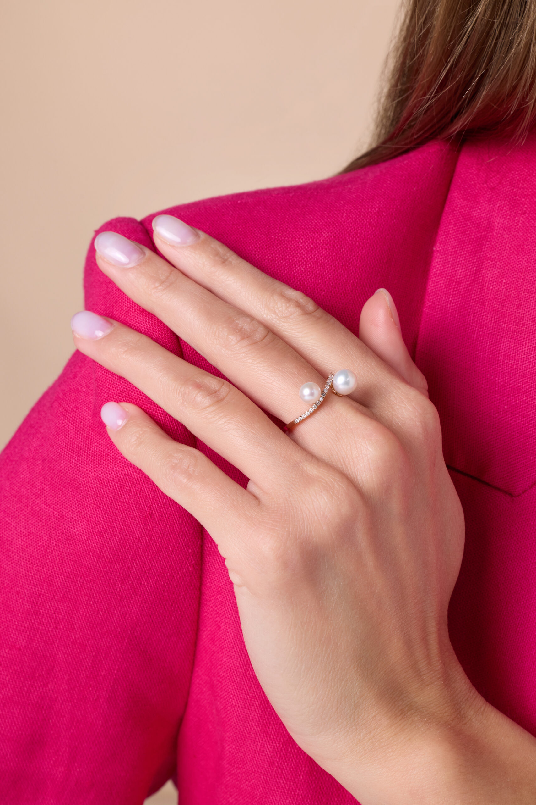 lavita rose gold diamond wave ring with twin pearls