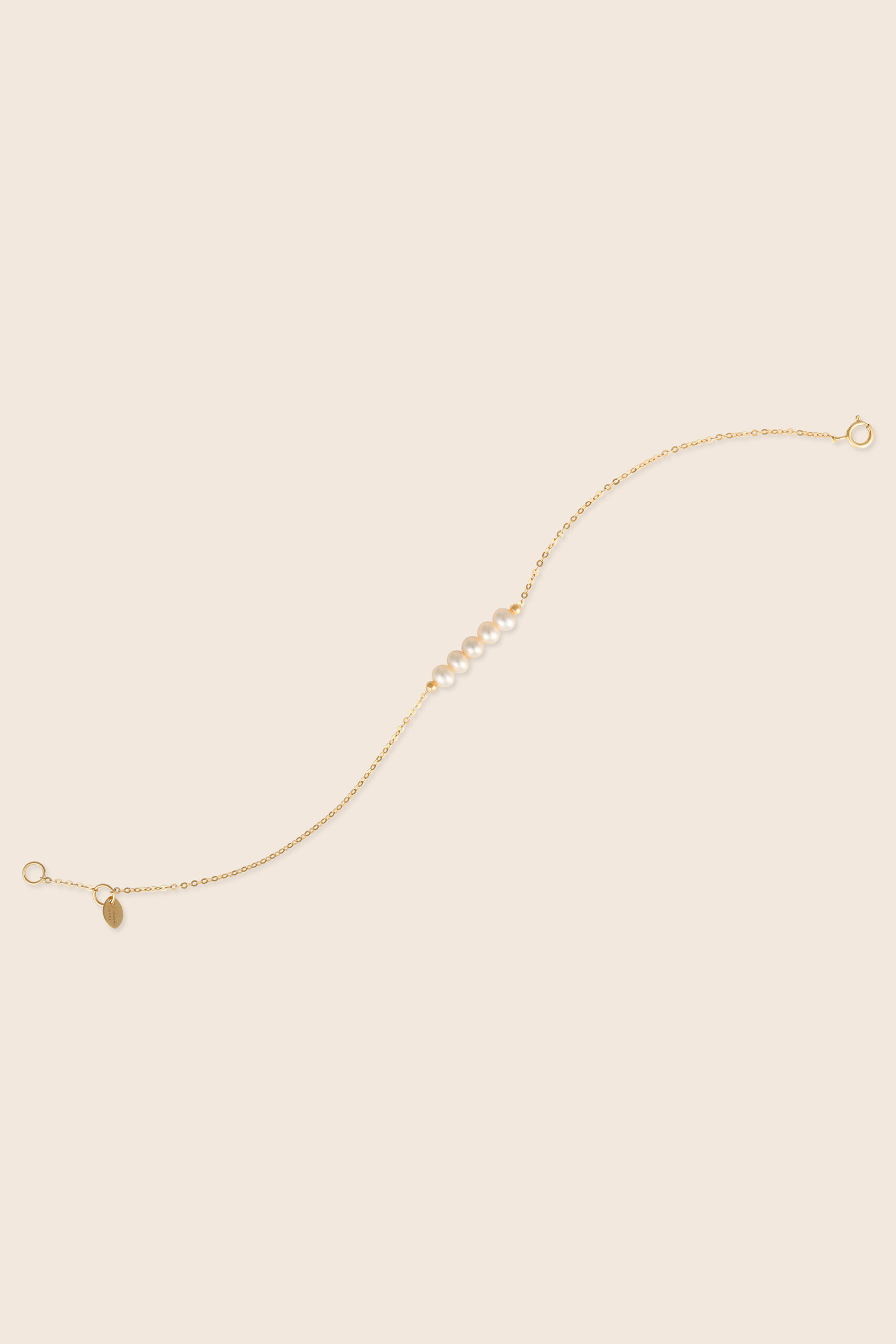 Featuring five radiant pearls, the yellow gold bracelet is seen where timeless elegance meets subtle sophistication, inspired by the gentle flow of nature