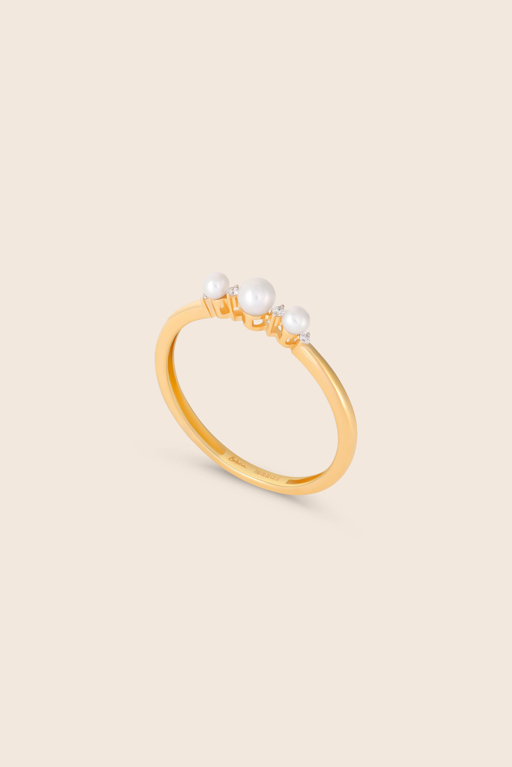 Lavita yellow gold diamond three pearl beads ring