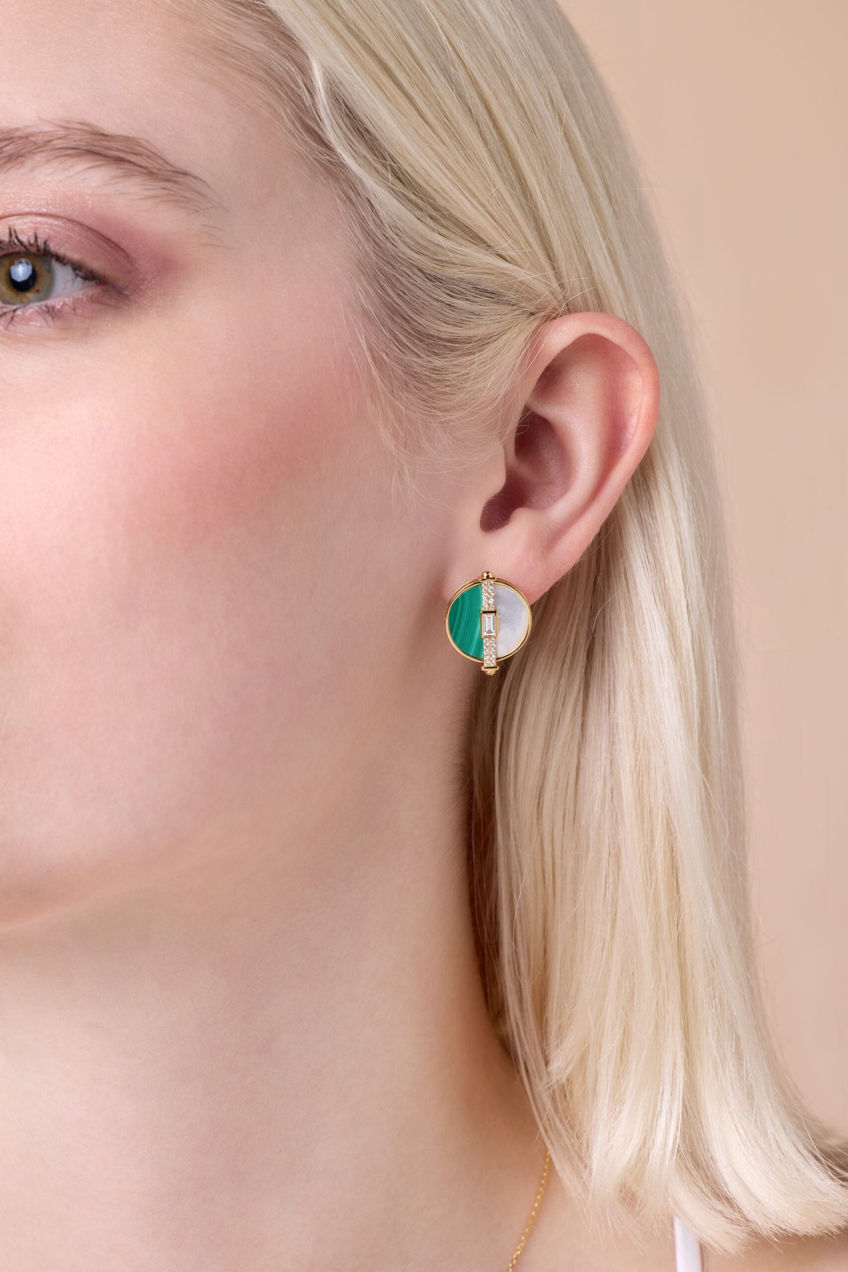 novelty yellow gold diamond earring with malacite