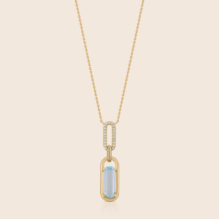 affinity yellow gold diamond pendant with blue topaz