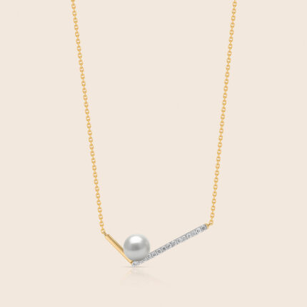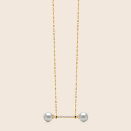 lavita yellow gold diamond balance bar pendant with twin pearls