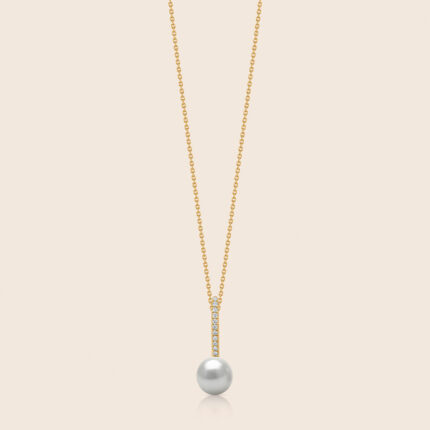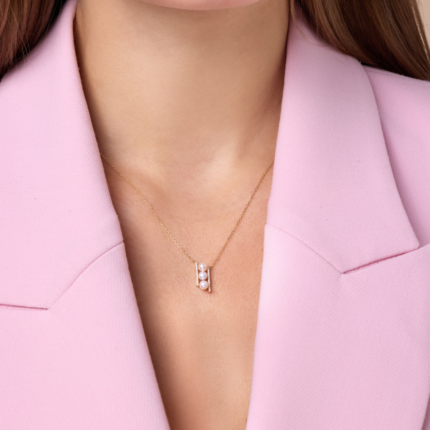 lavita yellow gold diamond vertical pendant with three stacked pearls