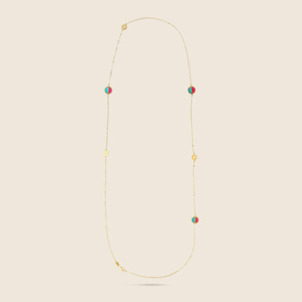 Novelty yellow gold long chain with gem stones