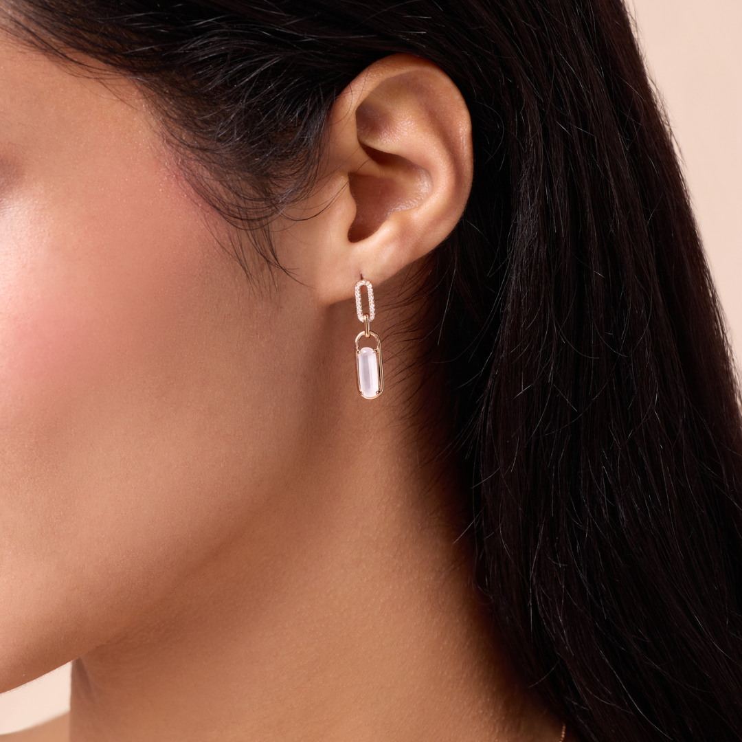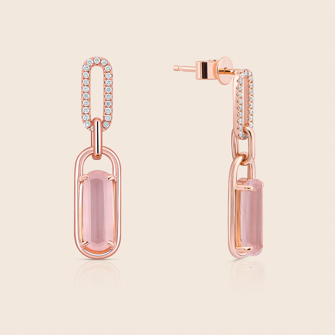 affinity rose gold diamond earring with rose quartz