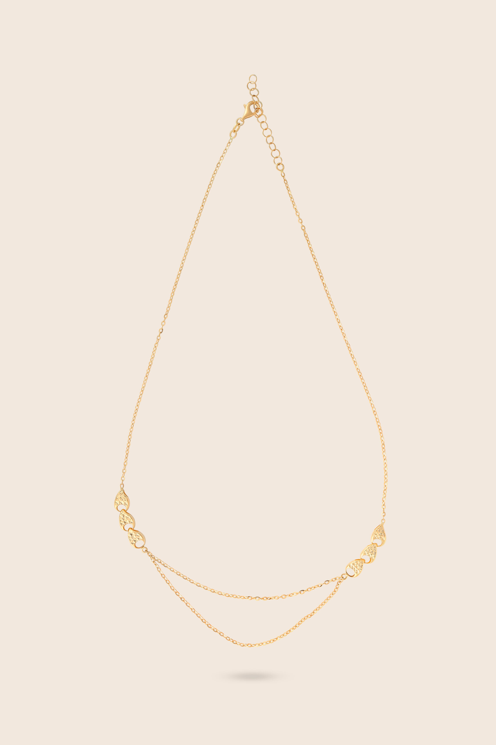 Affinity yellow gold hollowlink double layered necklace with side motive