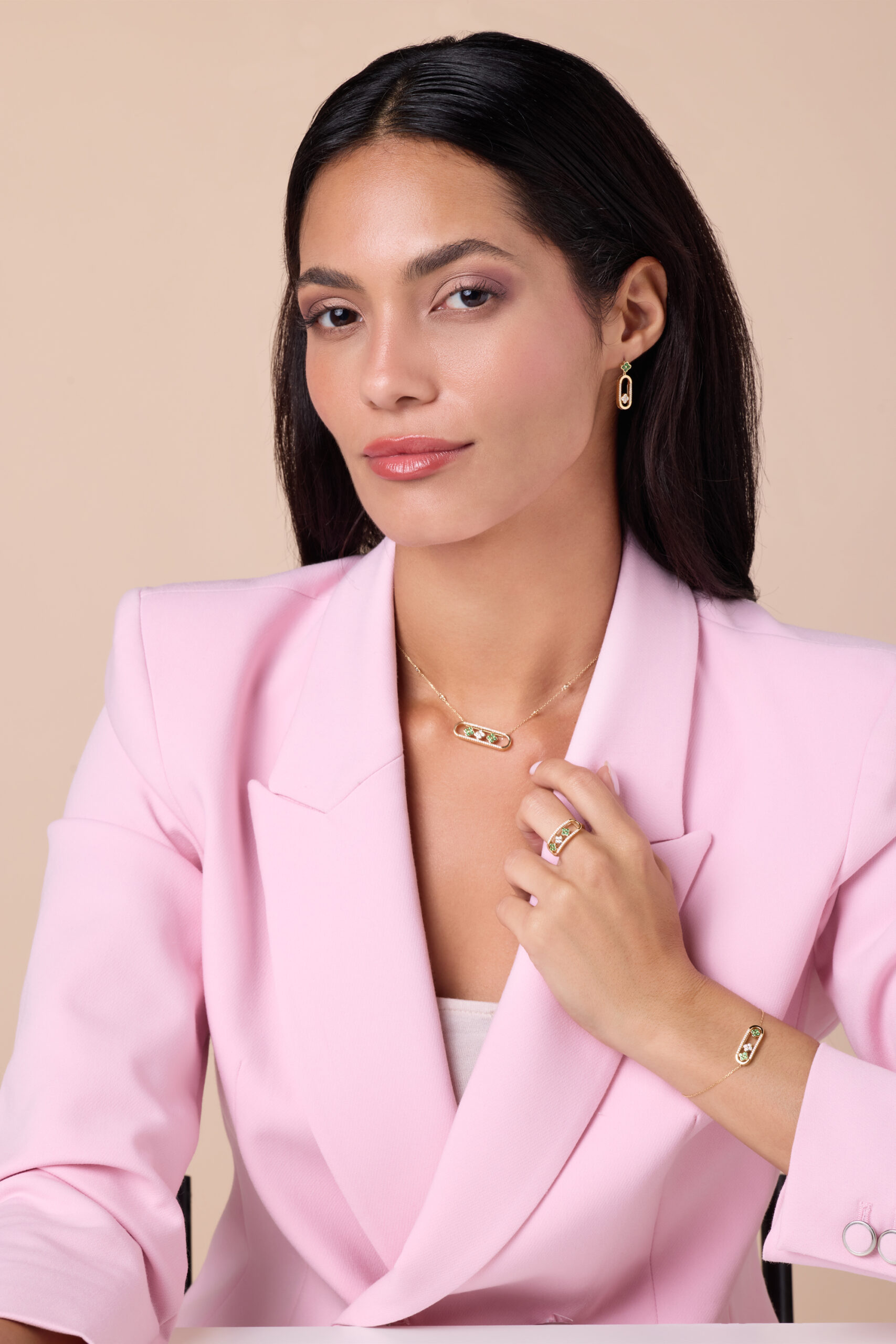 An emerald flower unfurls in yellow gold, accented by shimmering diamonds symbolizing growth, grace, and the timeless beauty of nature in bloom.