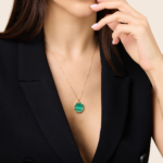 Amara yellow gold diamond round pendant with Malachite