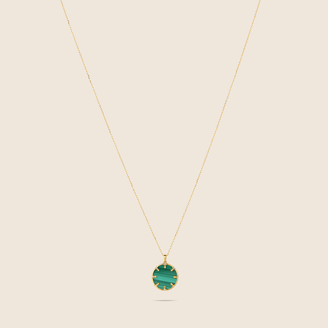 Amara yellow gold diamond round pendant with Malachite