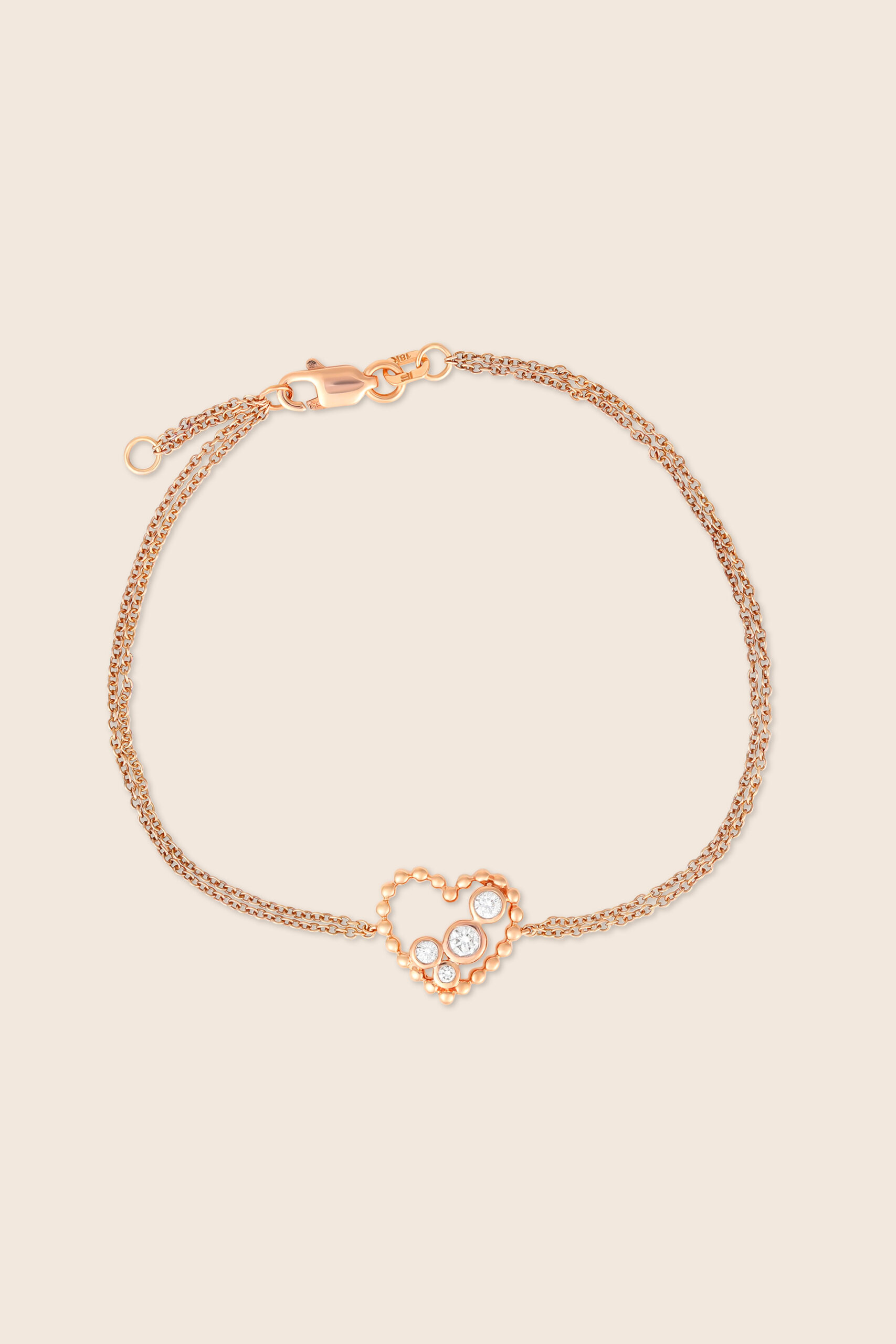 A heart of playful bubbles, rose gold orbs encircle diamonds that shimmer like captured laughter, eternalizing joy in every glimmer.