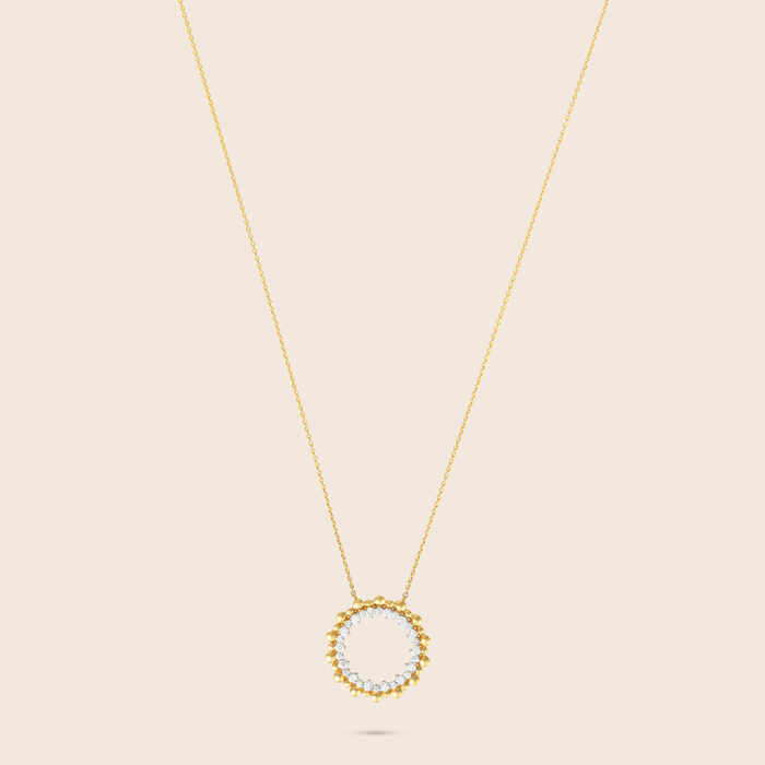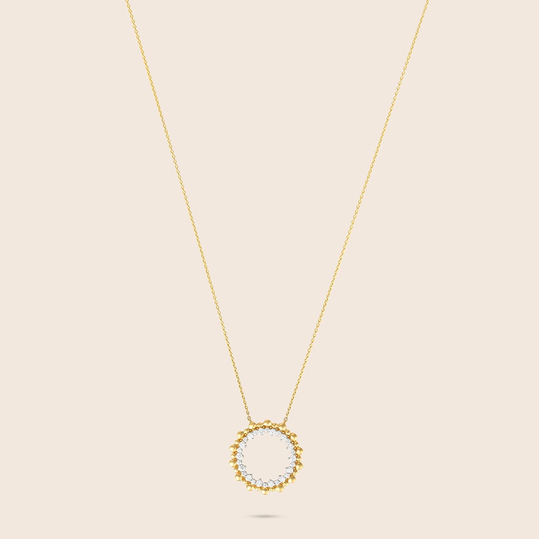 Bubbleiss yellow gold diamond halo pendant