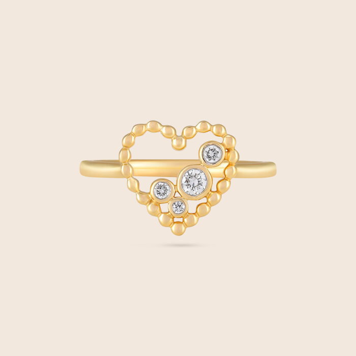 A heart of playful bubbles, yellow gold orbs encircle diamonds that shimmer like captured laughter, eternalizing joy in every glimmer.