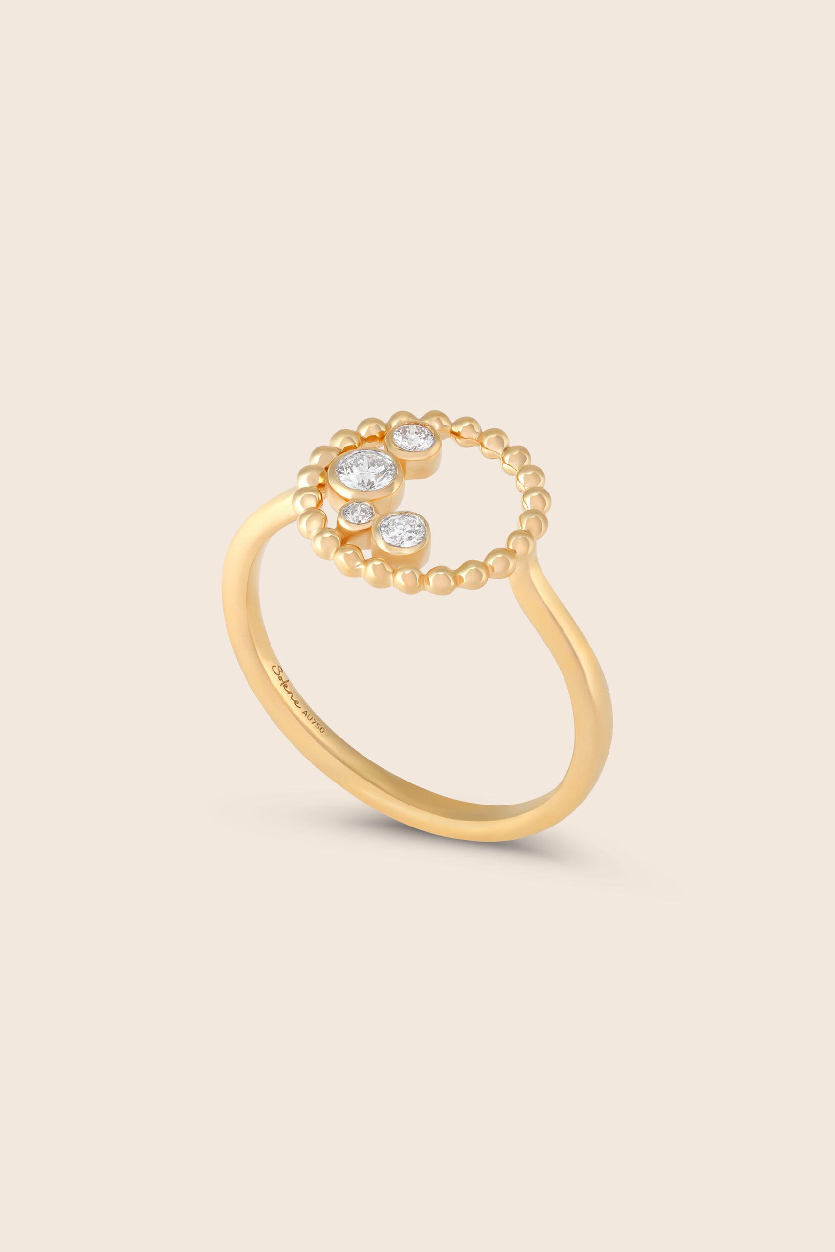 A loop of golden bubbles encircles radiant diamonds, blending childhood’s carefree charm with timeless grace.