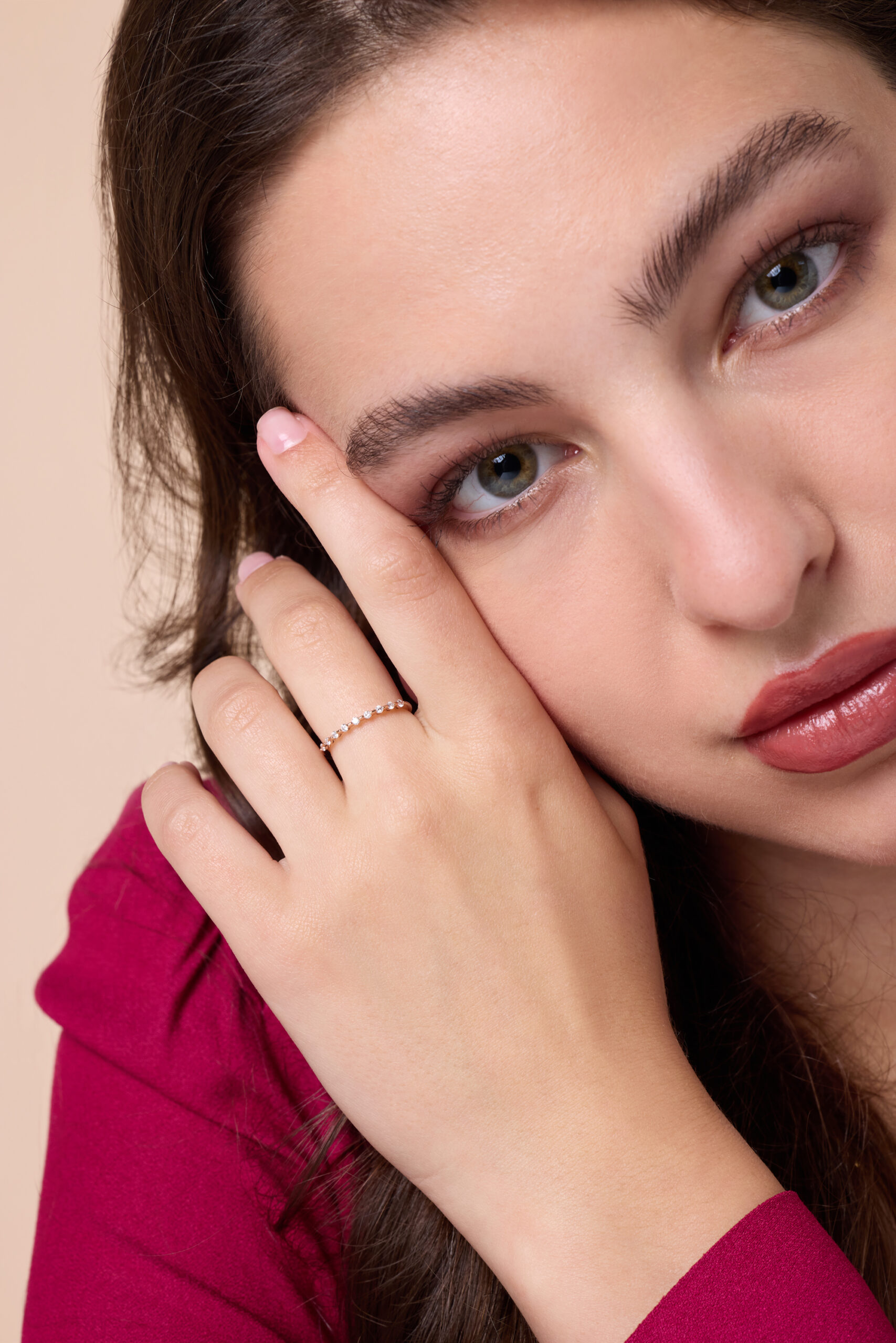Rose gold band adorned with diamonds timeless elegance where warmth meets brilliance.