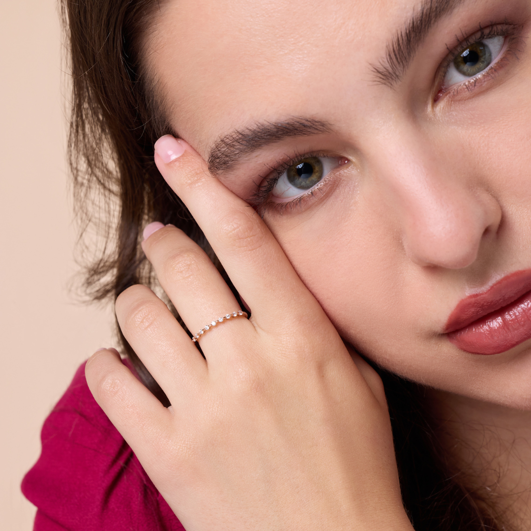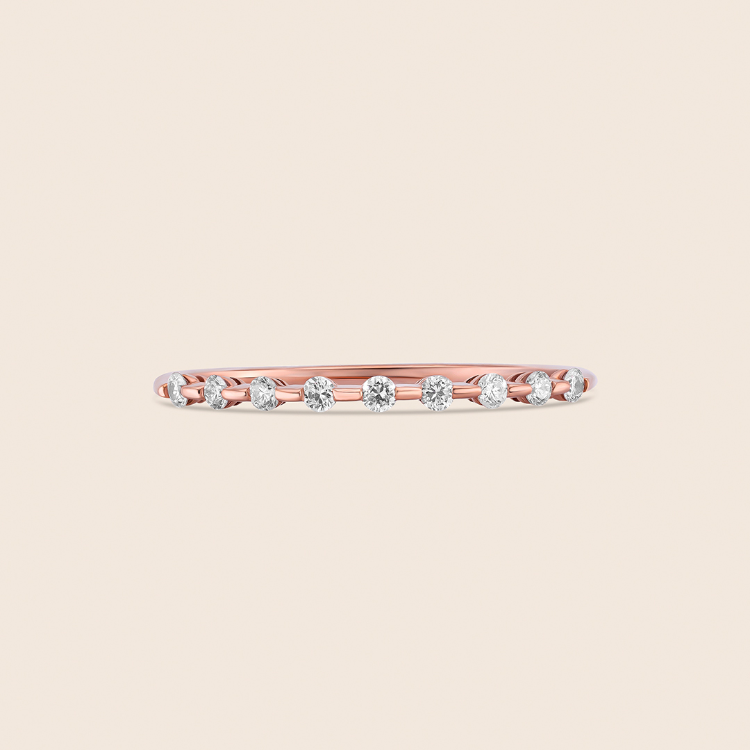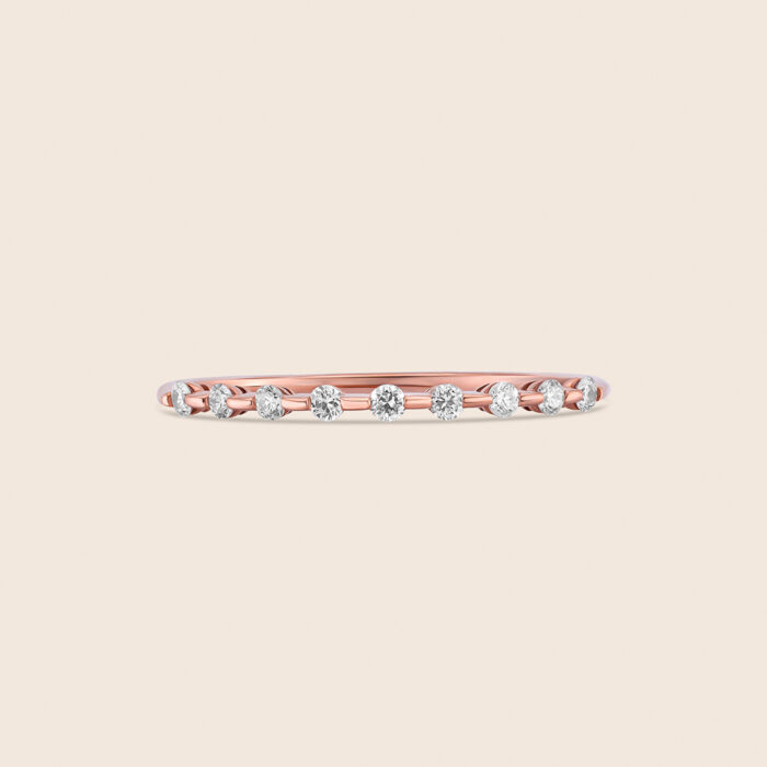 Rose gold band adorned with diamonds in bar setting timeless elegance where warmth meets brilliance.