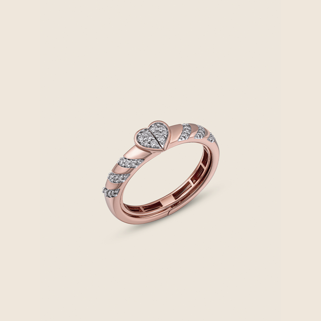 A rose gold band cradles a diamond heart, hiding a whispered secret within. Each gentle curve holds love?s quiet promise, sparkling softly, a delicate reminder of the moments only hearts can understand