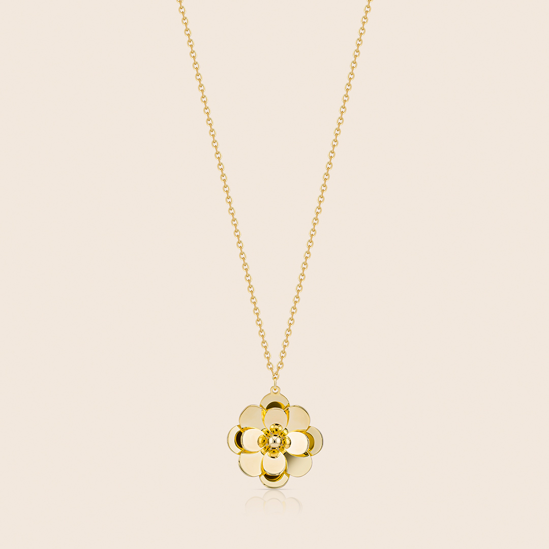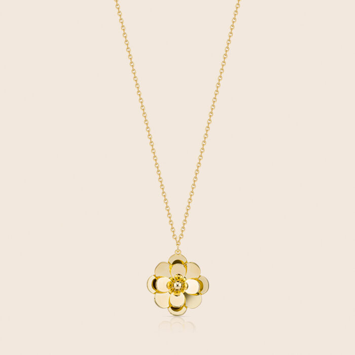 Each petal sculpted in gold, shimmering softly, capturing daylight?s glow while holding the perennial poetry of nature?s finest bloom