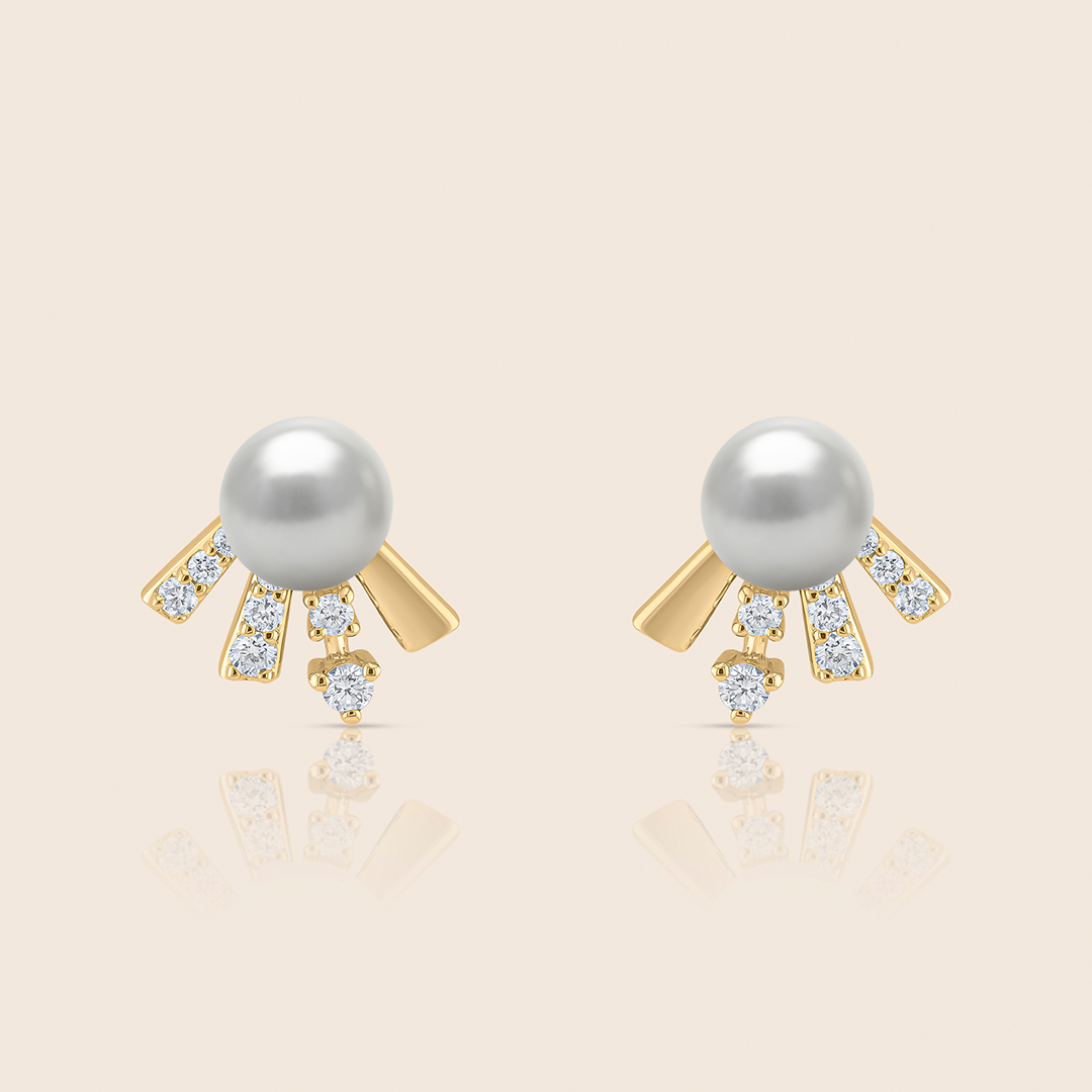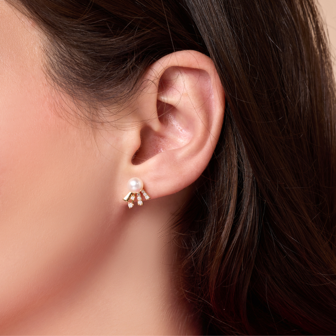 lavita rose gold bow earring with diamonds and a center pearl
