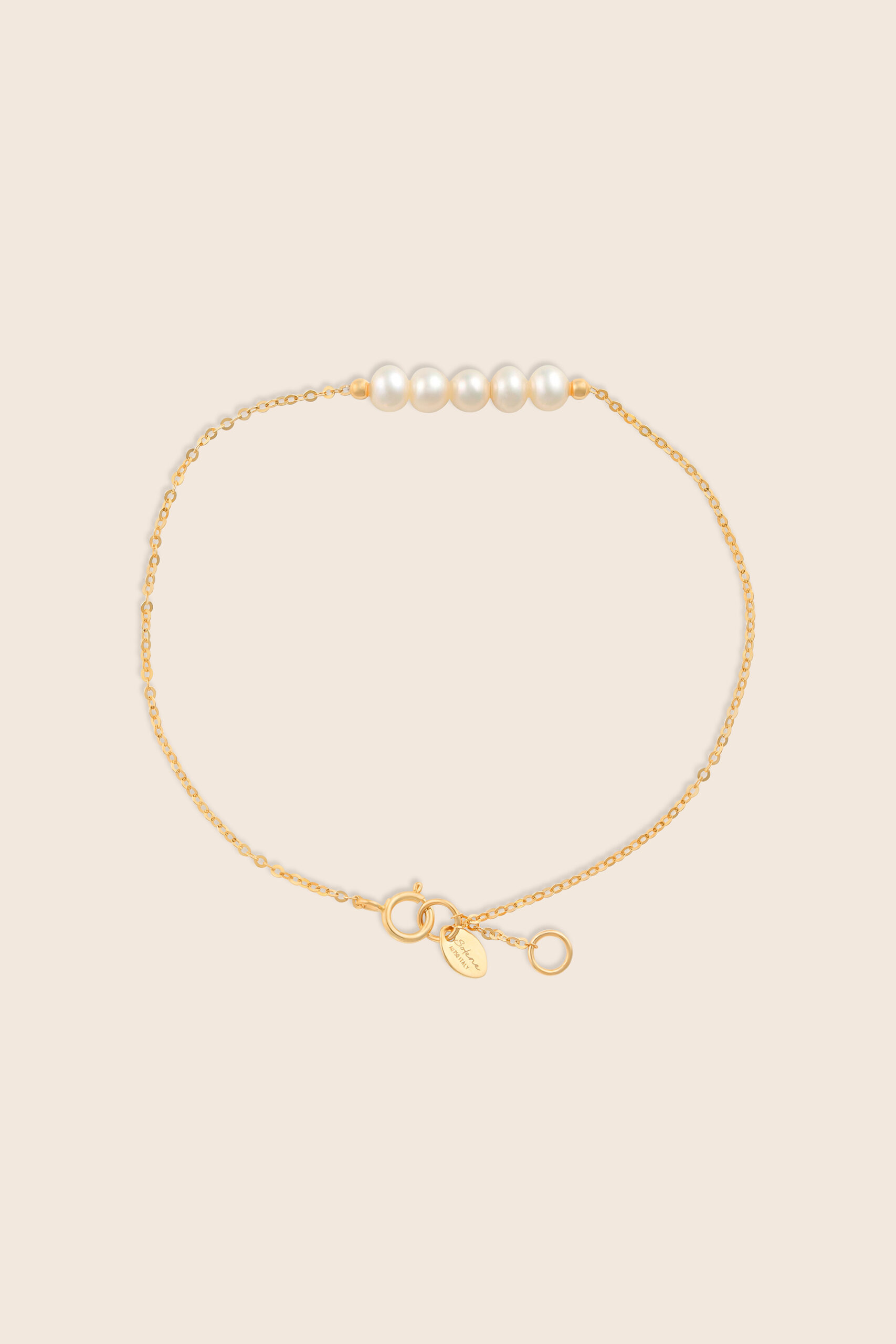 Featuring five radiant pearls, the yellow gold bracelet is seen where timeless elegance meets subtle sophistication, inspired by the gentle flow of nature