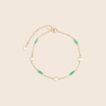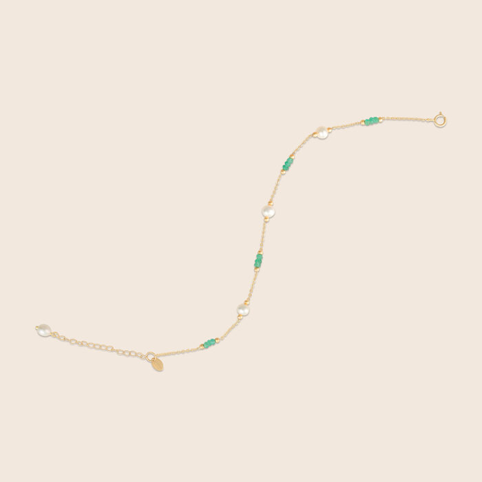 Lavita yellow gold pearl bracelet with two consecutive emerald beads