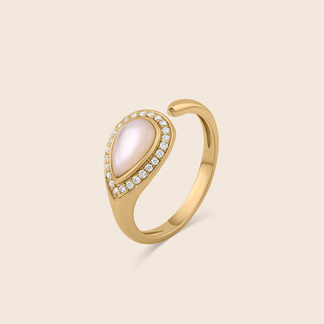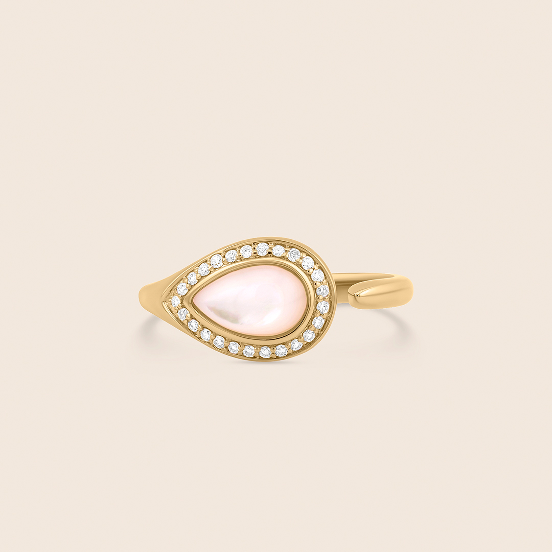 nephele yellow gold diamond ring with mother of pearl drops