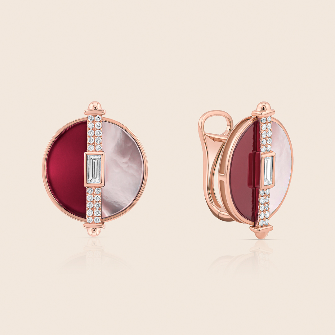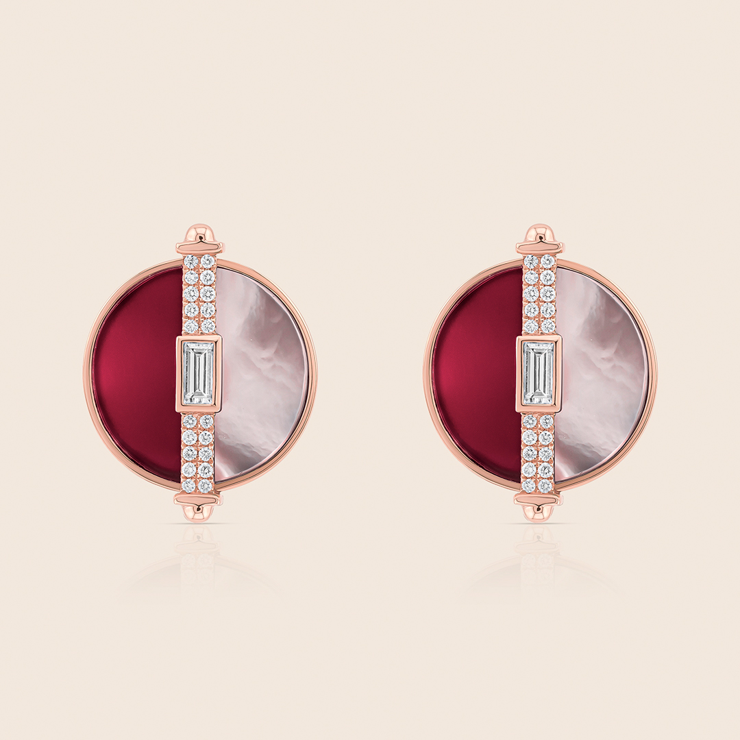 novelty rose gold diamond earring with rhodonite