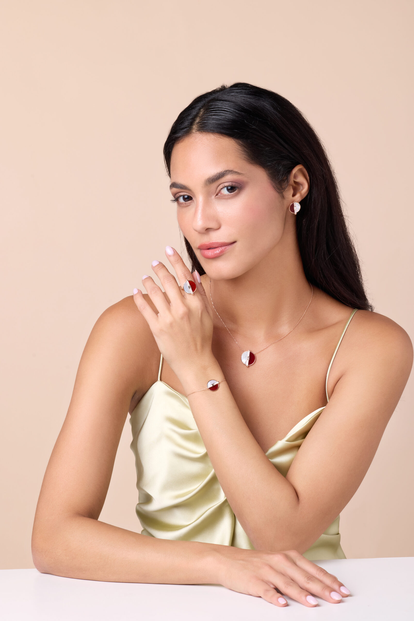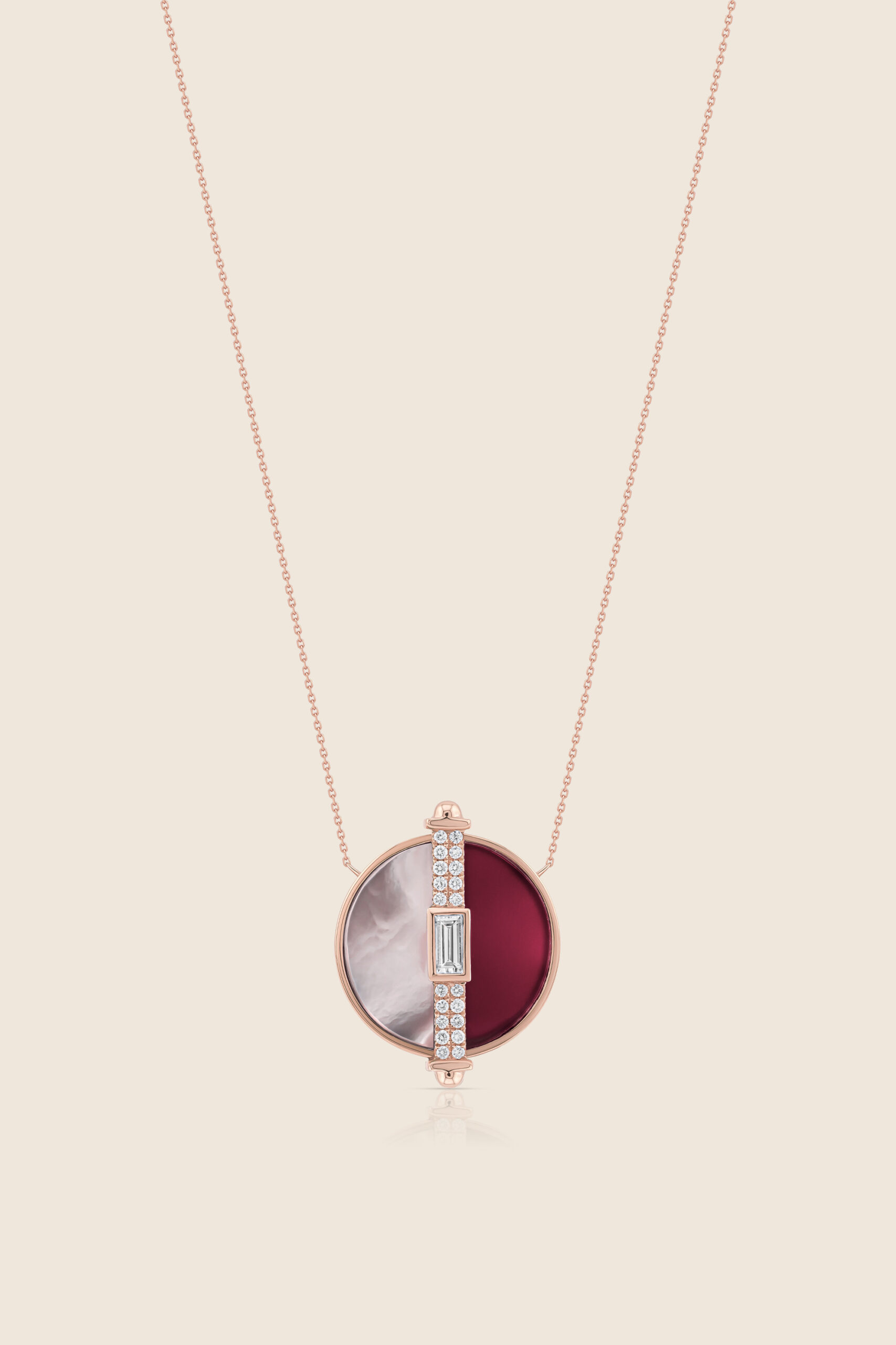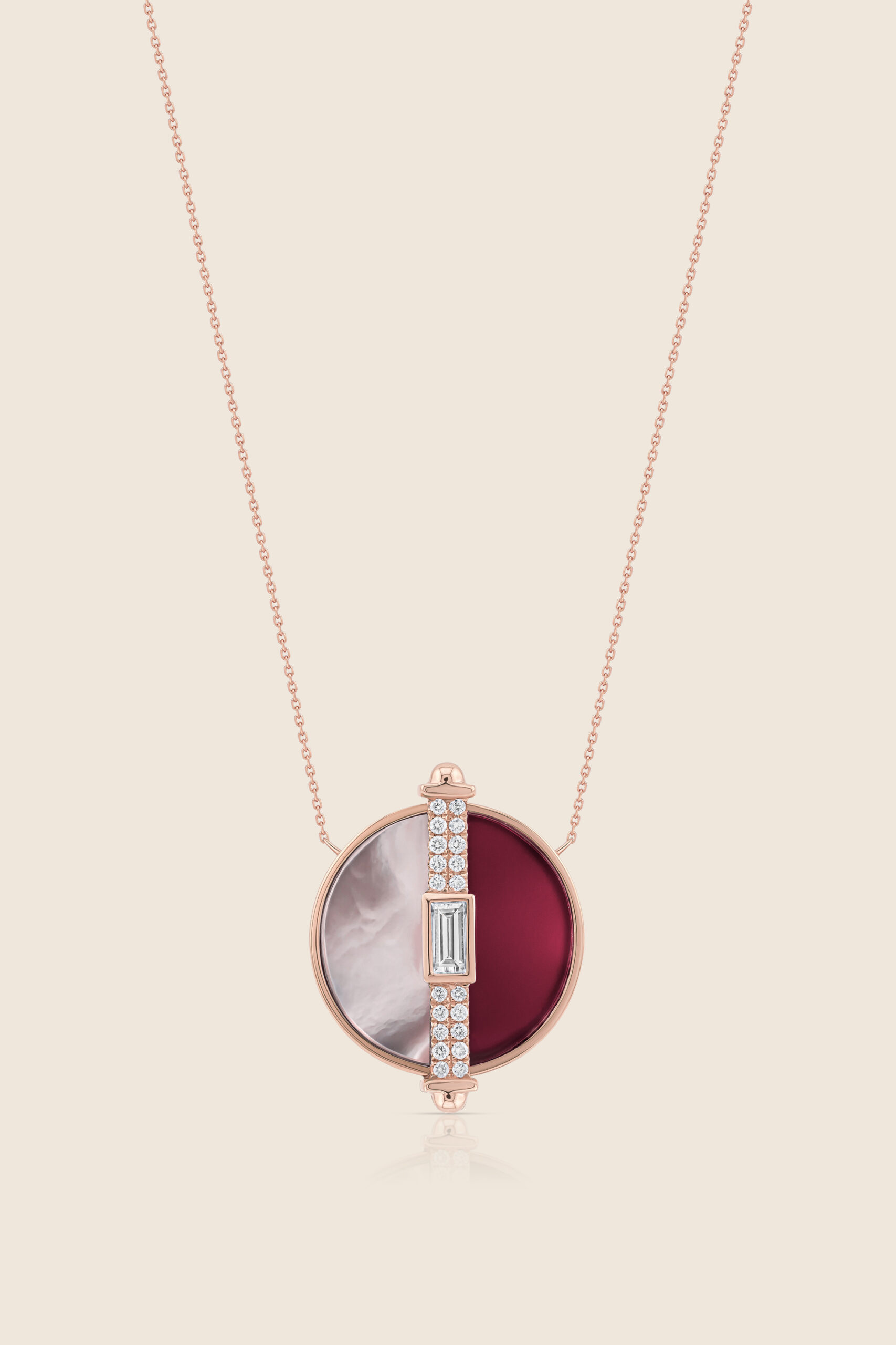 A tender rhodonite centerpiece embraced by rose gold and diamonds reflecting compassion, balance, and the quiet beauty of emotional grace.