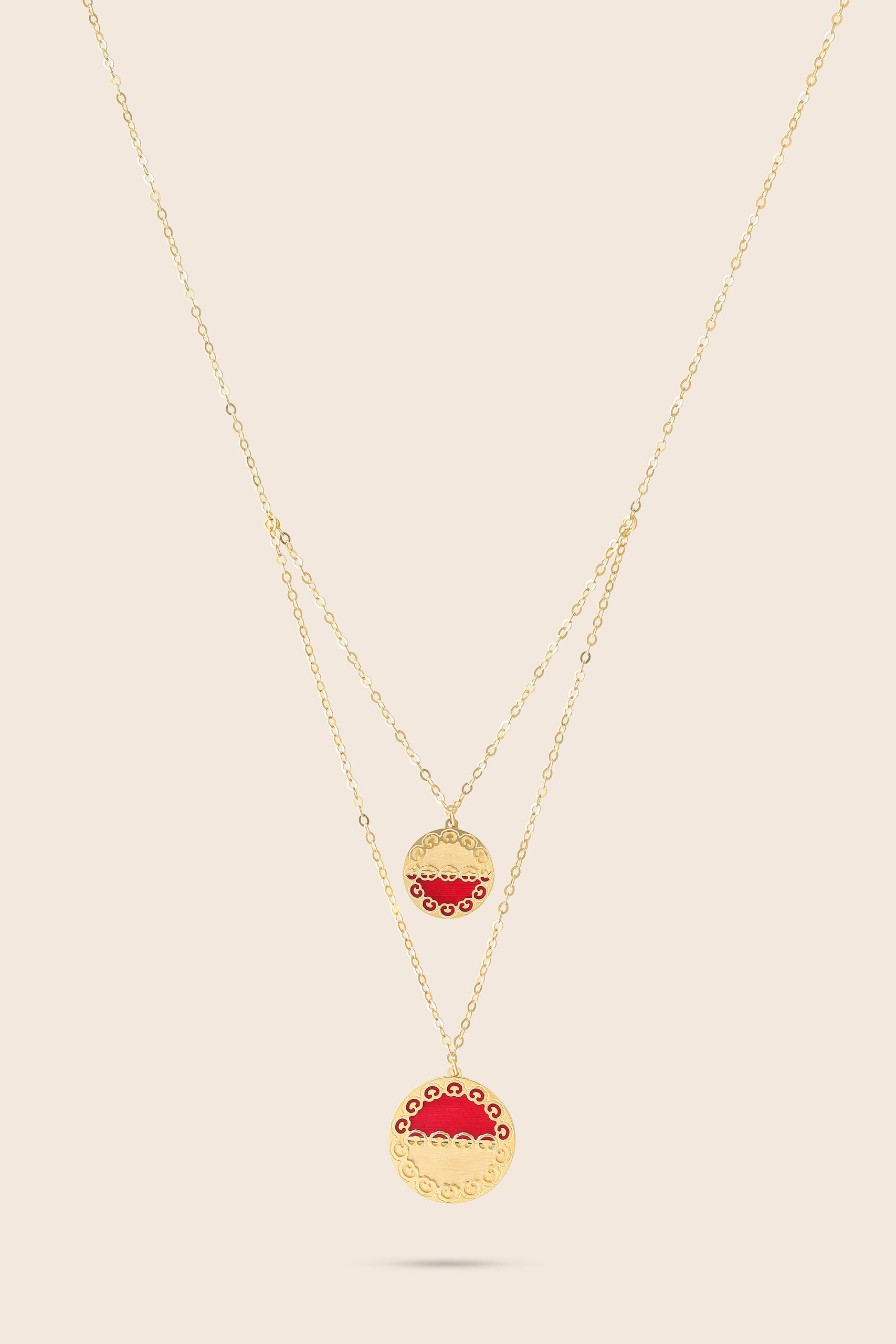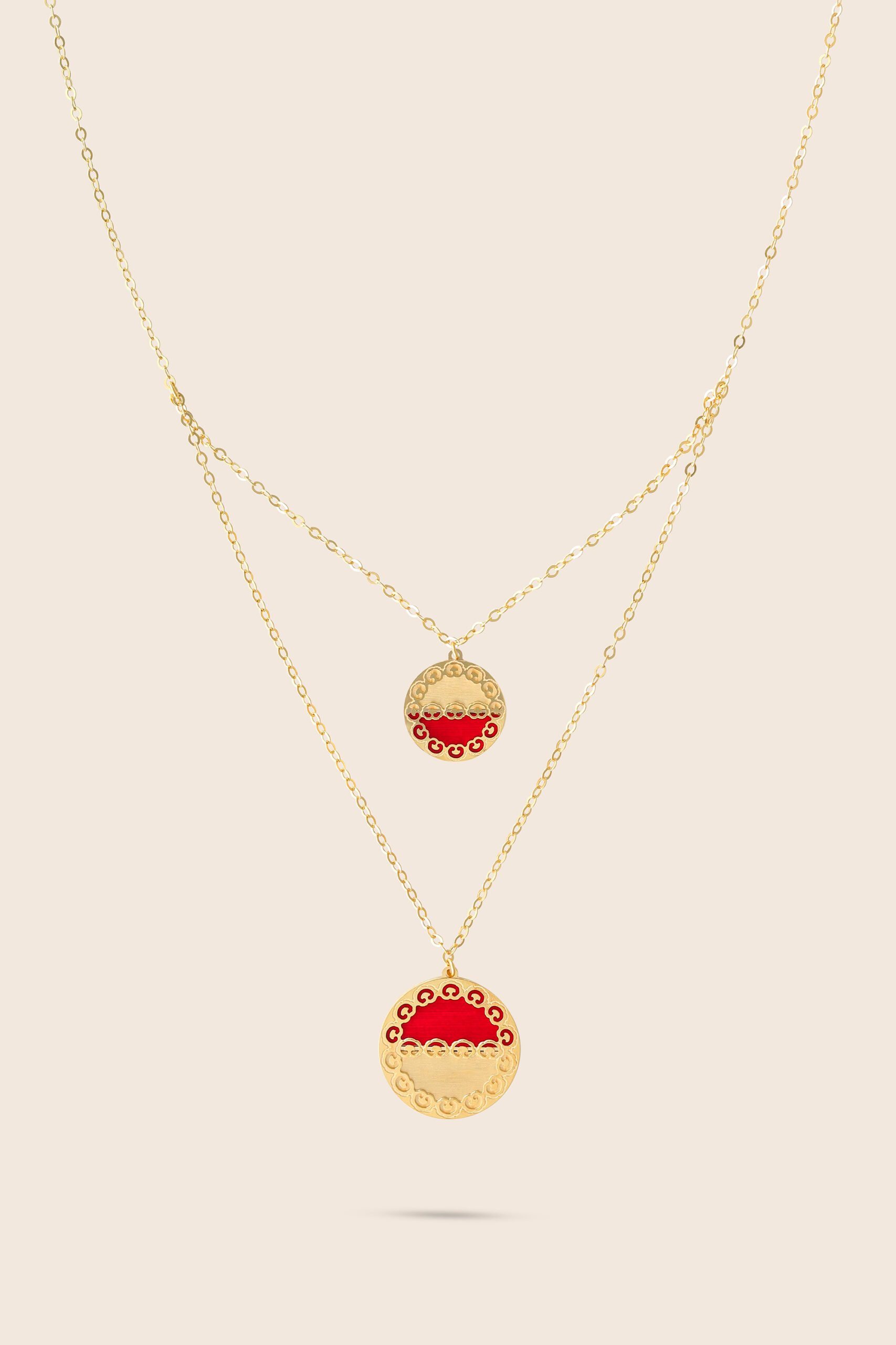 Embraced by a band of yellow gold, vivid dangling ruby and luminous enamel are set with delicate detailing, where elegance meets artistry and strength