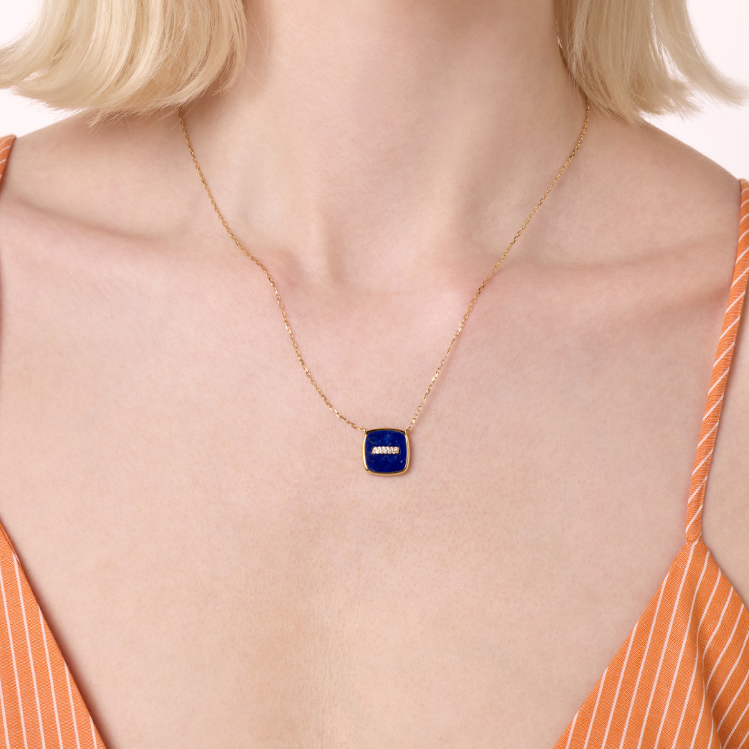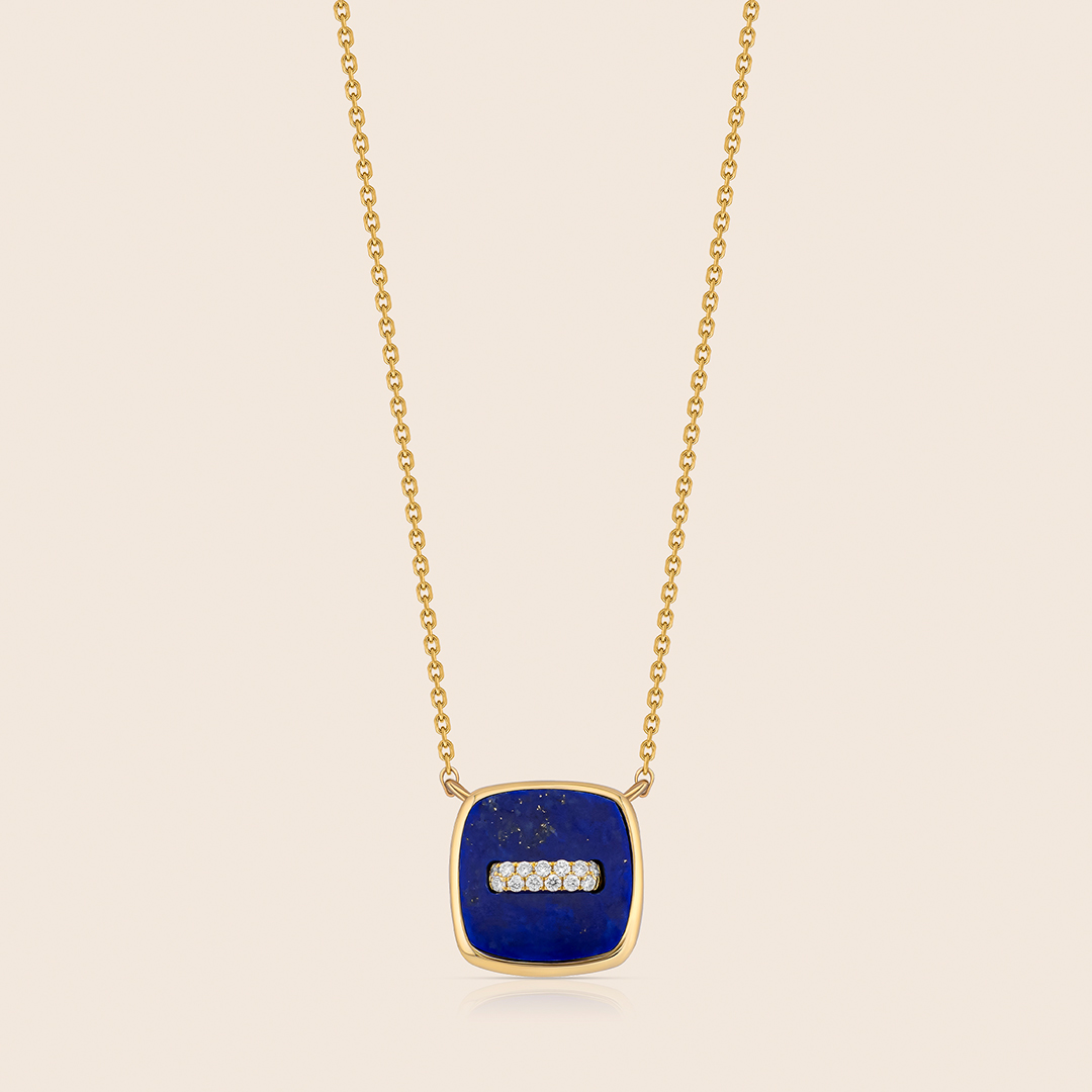 novelty yellow gold diamond pendant with lapis lazuli