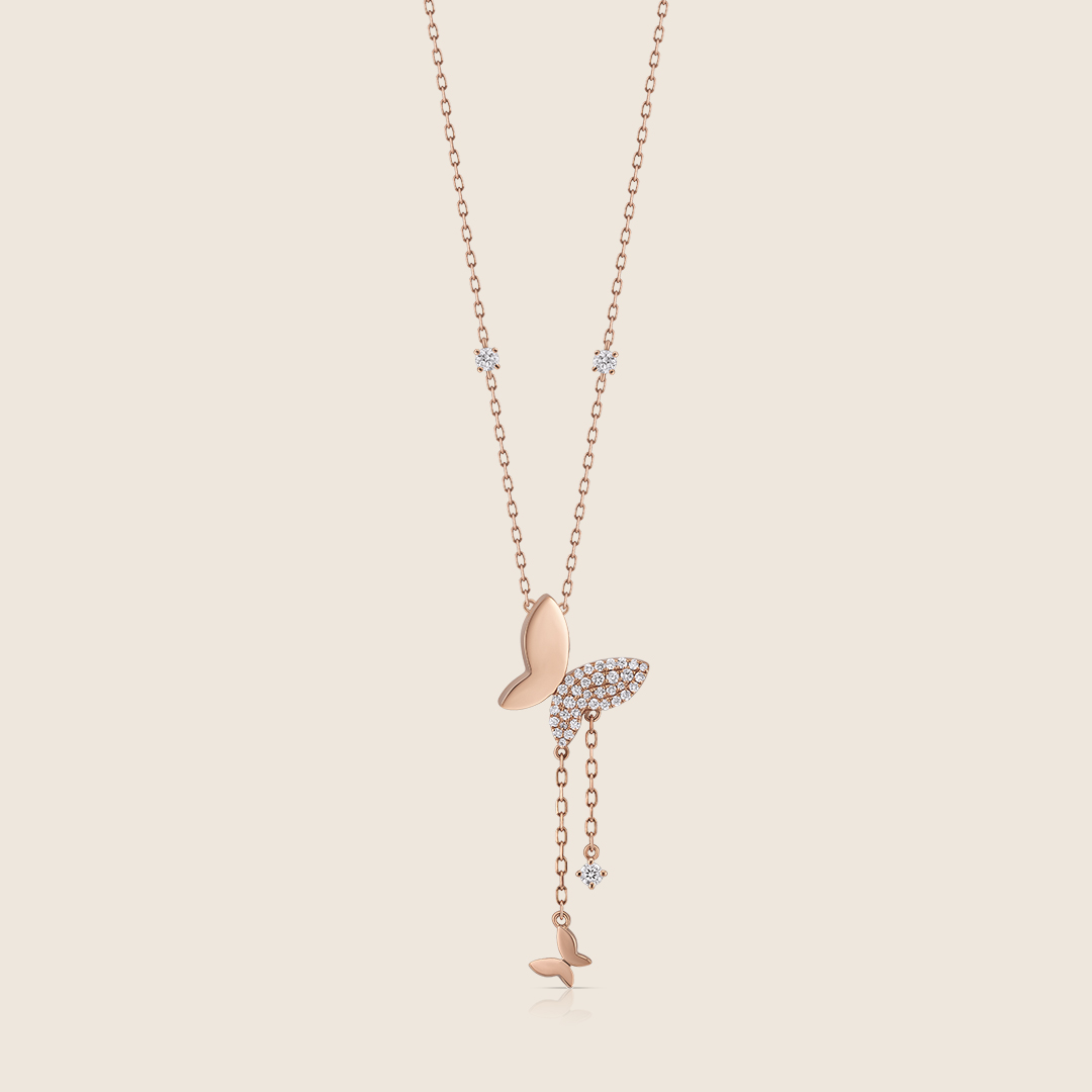 Inspired by the movement of butterfly wings, this 18K rose gold pendant features brilliant diamonds in a graceful and contemporary design