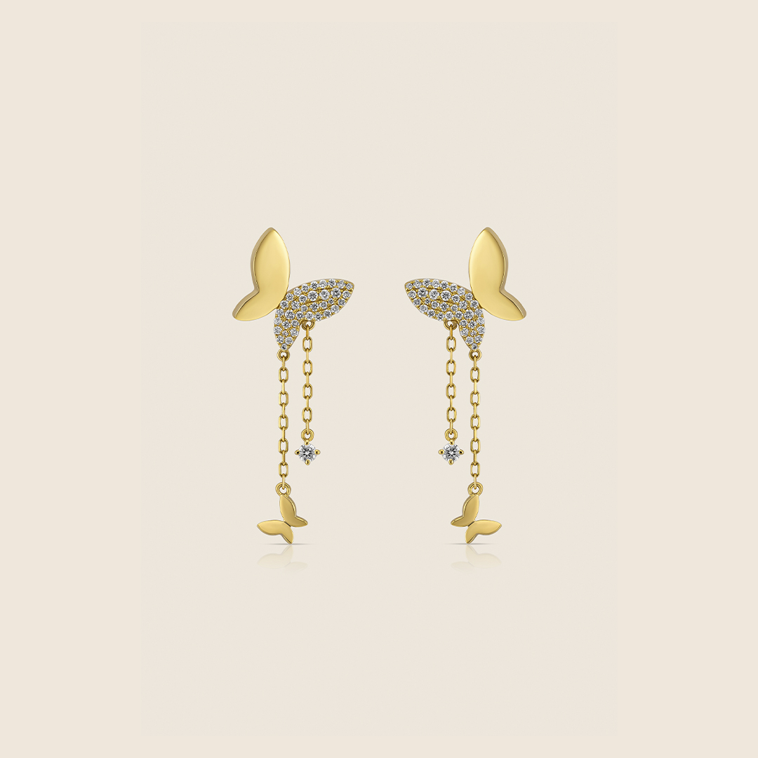 Volare 18k yellow Gold Dancing Wings Diamond earrings