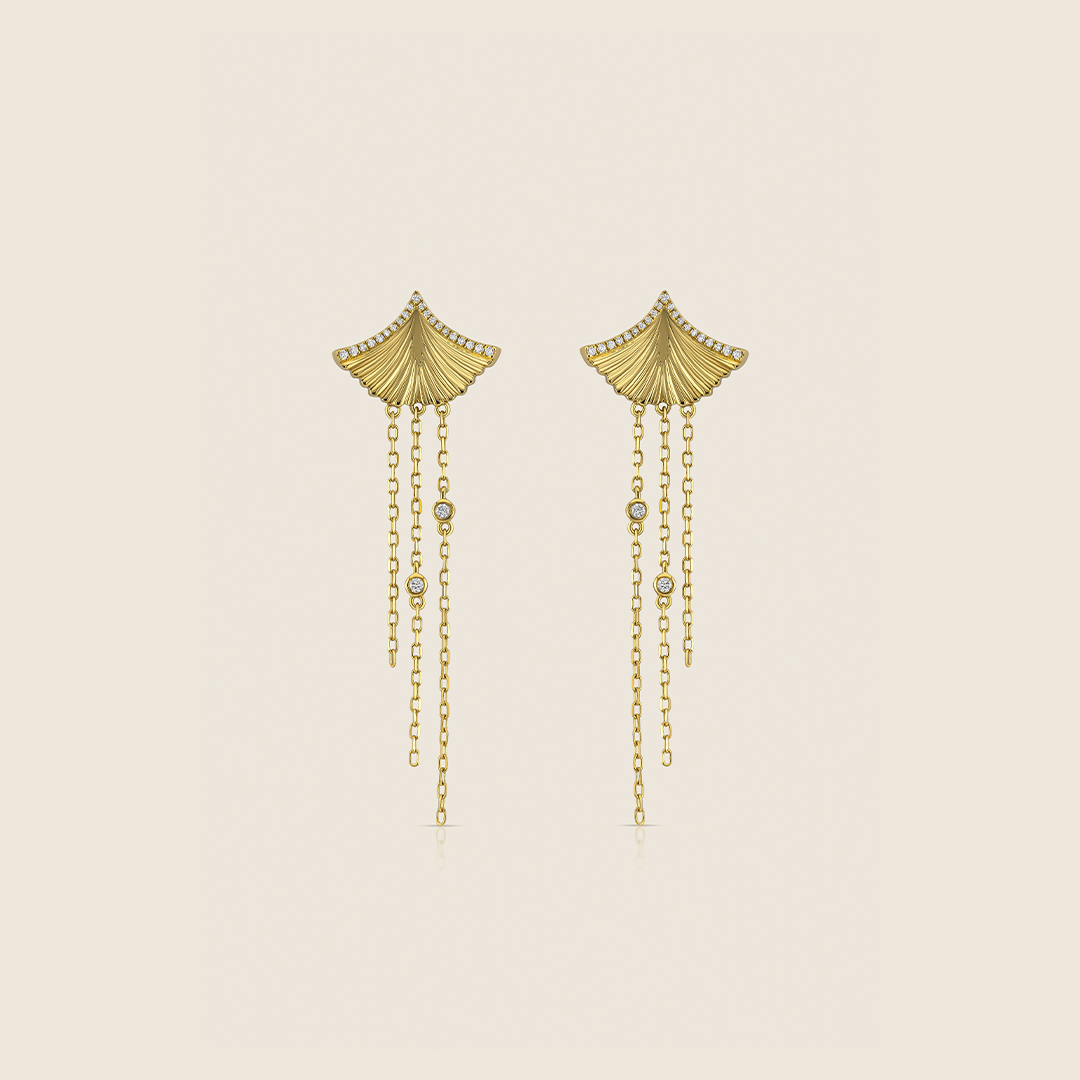 Crafted in radiant 18K yellow gold, these cascading wing earrings are adorned with brilliant diamonds for a sophisticated and dynamic look.