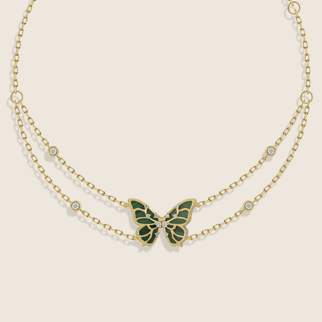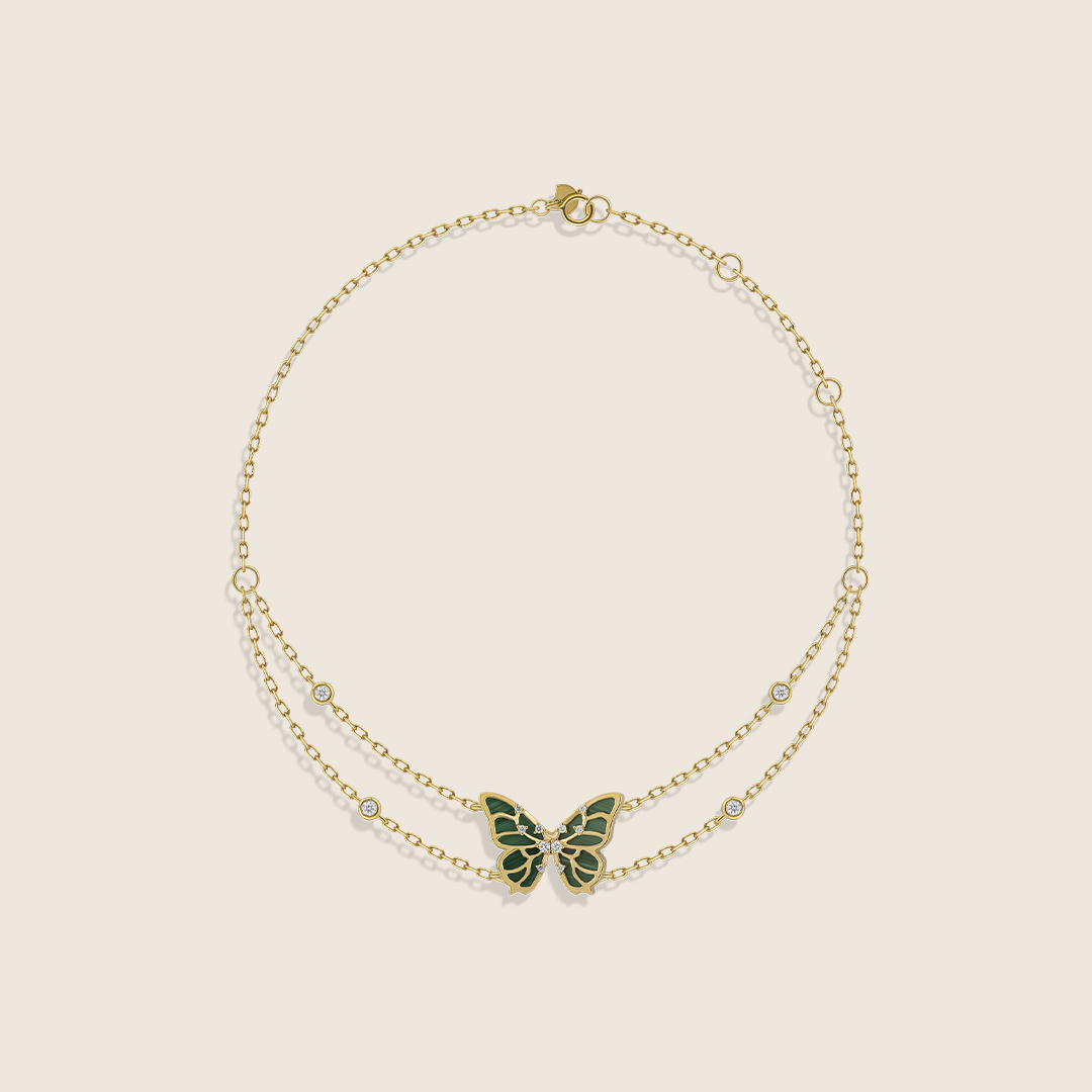 Volare 18k yellow Gold Malachite butterfly Diamond Bracelet